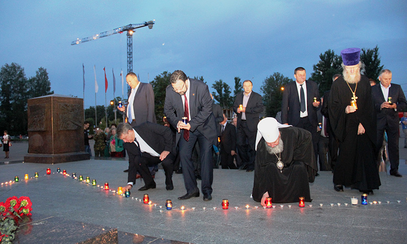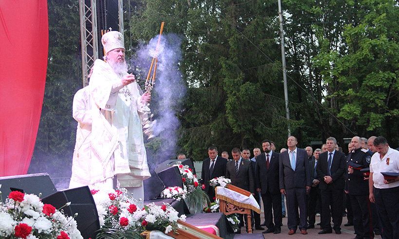 Затем в память о 27 миллионах погибших в годы Великой Отечественной войны митрополит Брянский и Севский Александр возглавил Божественную Литургию и заупокойную литию. В ее завершение митрополит, обращаясь к участникам акции, отметил:
