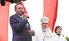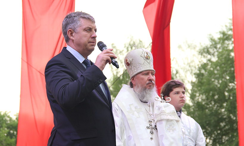 — Сегодня мы пришли на эту площадь почтить память наших предков, тех, кто 75 лет назад встал на защиту Родины, на защиту нашей Брянщины. Жестокой была эта война, но наши предки стойко защищали свою Родину. Православная вера помогала выдержать тот натиск фашизма, который вероломно обрушился на нашу страну. Я недавно посмотрел карту 31 года, когда фашисты поделили между своими кланами земли Брянской, Орловской, Калужской и ряда других областей. И они говорили своим солдатам: вы идете — это ваша земля. Но наши предки сказали: «Нет, это земля наша!» И они отстояли эту землю!