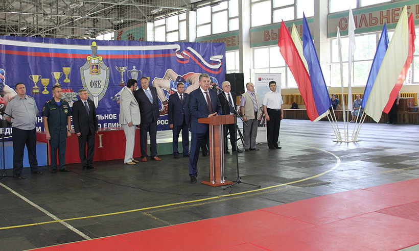 От имени полномочного представителя президента РФ в ЦФО Александра Беглова спортивные делегации приветствовал его помощник Георгий Бурцев. Он пожелал спортсменам ярких побед, честного судейства, а зрителям — радости и понимания того, что перед ними выступают настоящие защитники нашего Отечества. Георгий Бурцев поблагодарил руководство Брянской области в лице Губернатора Александра Богомаза и председателя Брянской областной Думы Владимира Попкова за то, что они помогли состояться состязаниям такого высокого уровня.