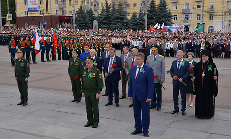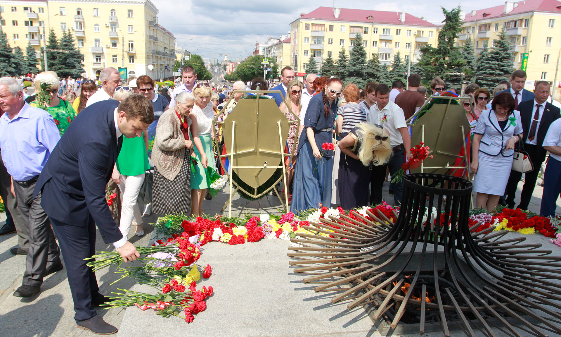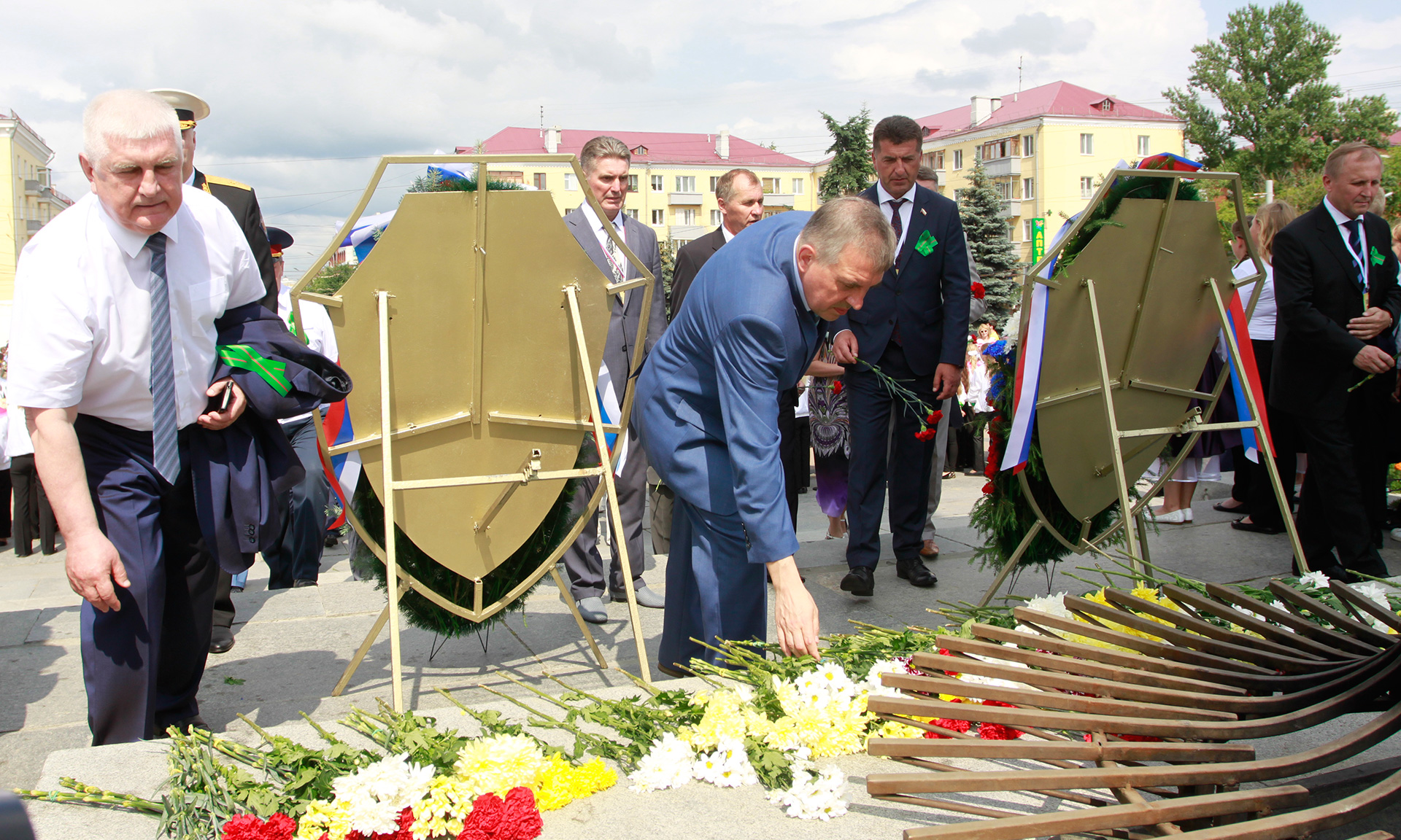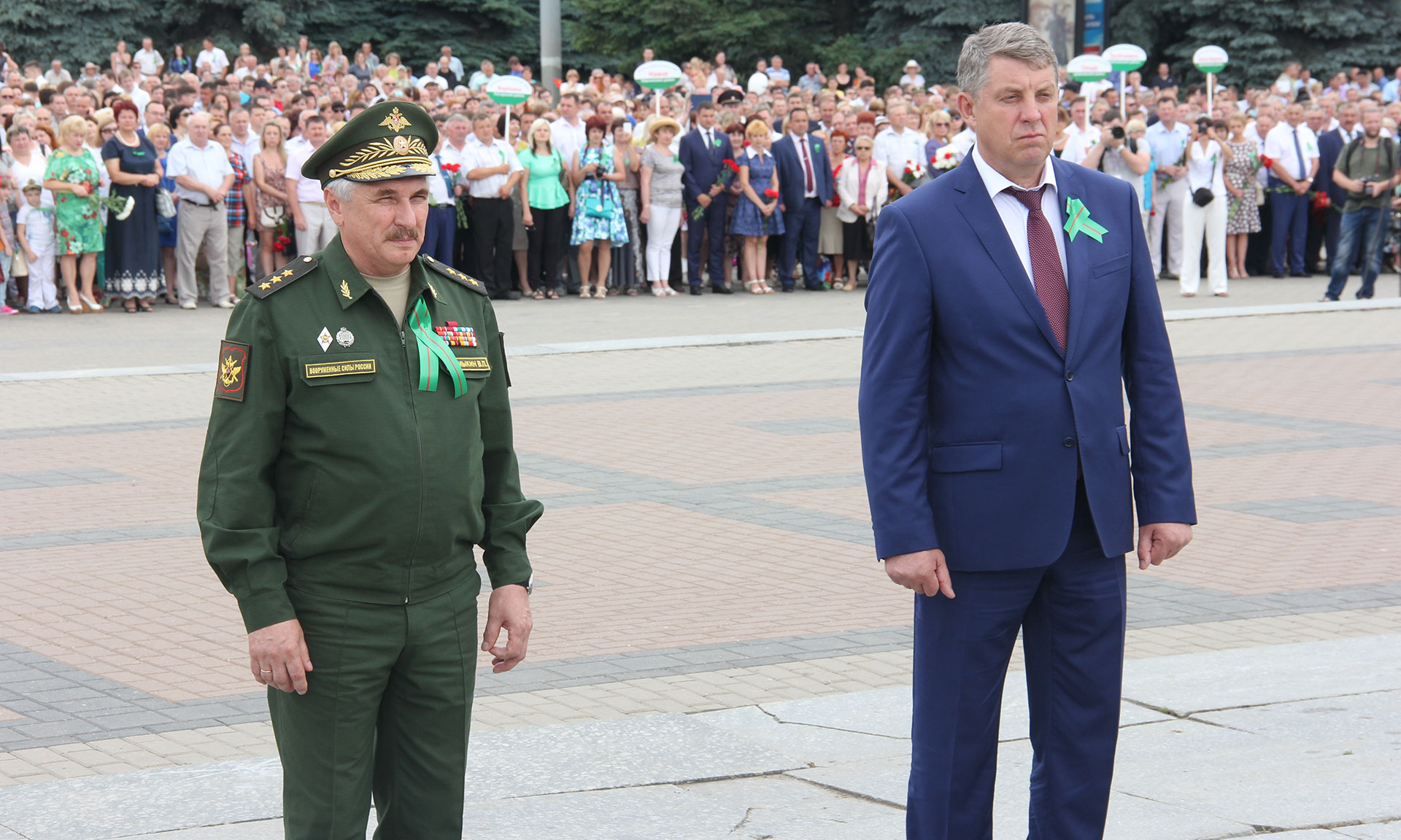 В церемонии возложения цветов к обелиску приняли участие начальник Главного управления по работе с личным составом Вооруженных Сил Российской Федерации генерал-майор Михаил Смыслов, командующий 20-й гвардейской общевойсковой Краснознаменной армией Западного военного округа Сергей Кузовлев, военный комендант города Москвы генерал-майор Евгений Селезенев, заместитель Председателя Могилевского областного исполнительного комитета Виктор Некрашевич, Председатель Могилевского областного Совета депутатов Анатолий Исайченко, заместитель председателя Правительства Орловской области по безопасности Виталий Утешев, депутат Государственной Думы ФС РФ Николай Валуев, начальник Главного штаба «Юнармии» олимпийский чемпион Дмитрий Труненков, заместитель начальника Центрального спортивного клуба Армии Анна Ильина, прокурор Брянской области Александр Войтович, председатель Брянской областной Думы Владимир Попков, главный федеральный инспектор по Брянской области Леонид Соломатин, начальник УФСБ России по Брянской области генерал-лейтенант Сергей Блинов, начальник УМВД по Брянской области генерал-майор полиции Валентин Кузьмин, руководитель следственного управления Следственного комитета РФ по Брянской области генерал-майор юстиции Игорь Литвинов, начальник Пограничного управления ФСБ России по Брянской области контр-адмирал Сергей Станкевич, начальник Главного управления МЧС России по Брянской области, полковник Вадим Уваркин, епископ Клинцовский и Трубчевский Владимир, председатель Брянского областного совета ветеранов войны, труда, Вооруженных Сил и правоохранительных органов Сергей Панков.