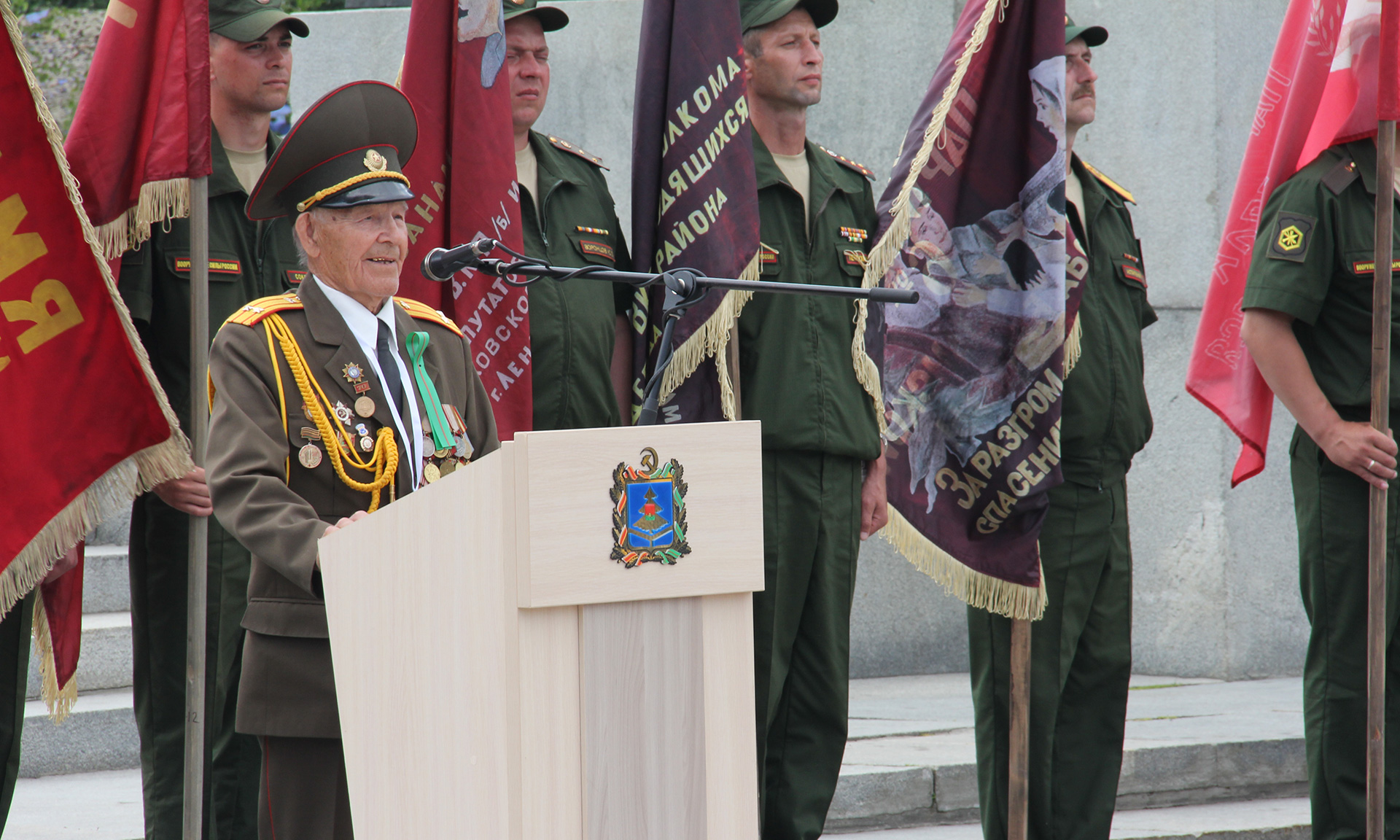 Дорогие ветераны! По поручению Министра обороны выражаю вам признательность за ратный подвиг и активную общественную деятельность, а всем присутствующим желаю сохранить и передать потомкам память о героях, в кровопролитных боях с врагом отстоявших свободу и независимость нашей Родины!