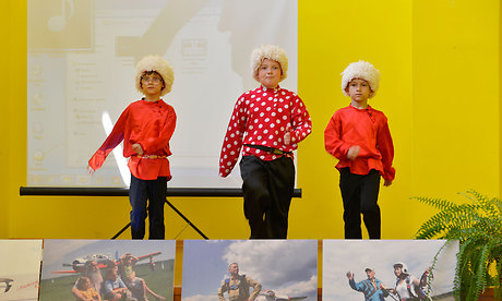 На площадке перед школой специально для гостей учебного заведения состоялось выступление профессиональных спортсменов и юных авиамоделистов.