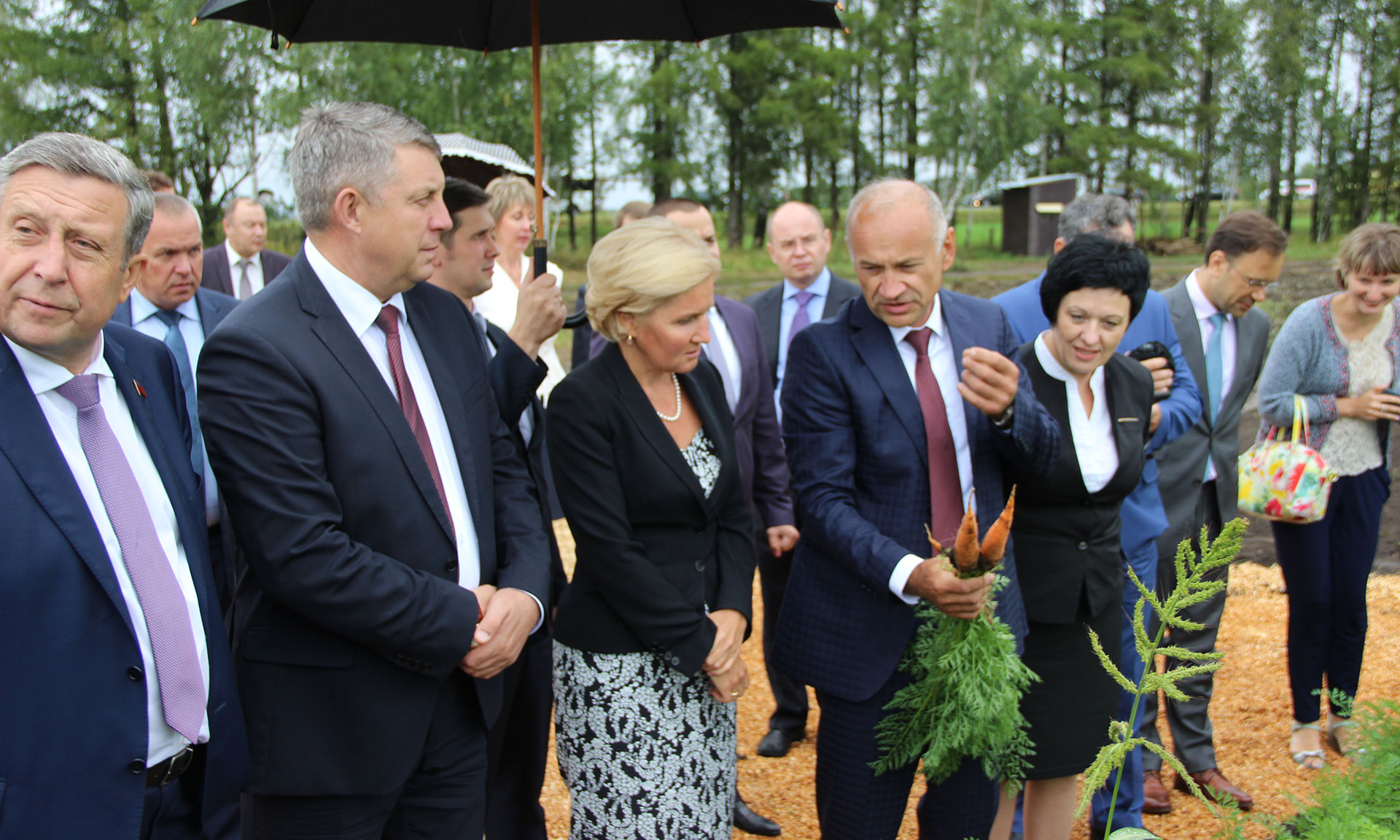 Современные технологии, используемые при уборке урожая на полях Брянской области, приятно удивили заместителя Председателя Правительства РФ и представителей официальной делегации. Гостям продемонстрировали одно из полей «ОХОТНО», на котором происходит уборка моркови. Технология двурядной посадки овощей и уборки урожая является одной из передовых, используемых в АПК Брянской области. Система хранения и обработки способна сохранять все полезные свойства получаемых продуктов.