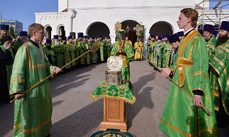 20 августа из Русского Пантелеимонова монастыря на Афоне, в котором хранятся мощи и из которого они до настоящего момента никогда не вывозились, святыня в сопровождении монахов была доставлена в Свято-Духов кафедральный собор в Минске. Затем начался российский этап принесения.