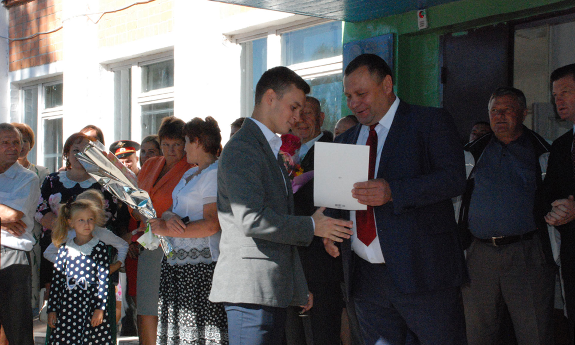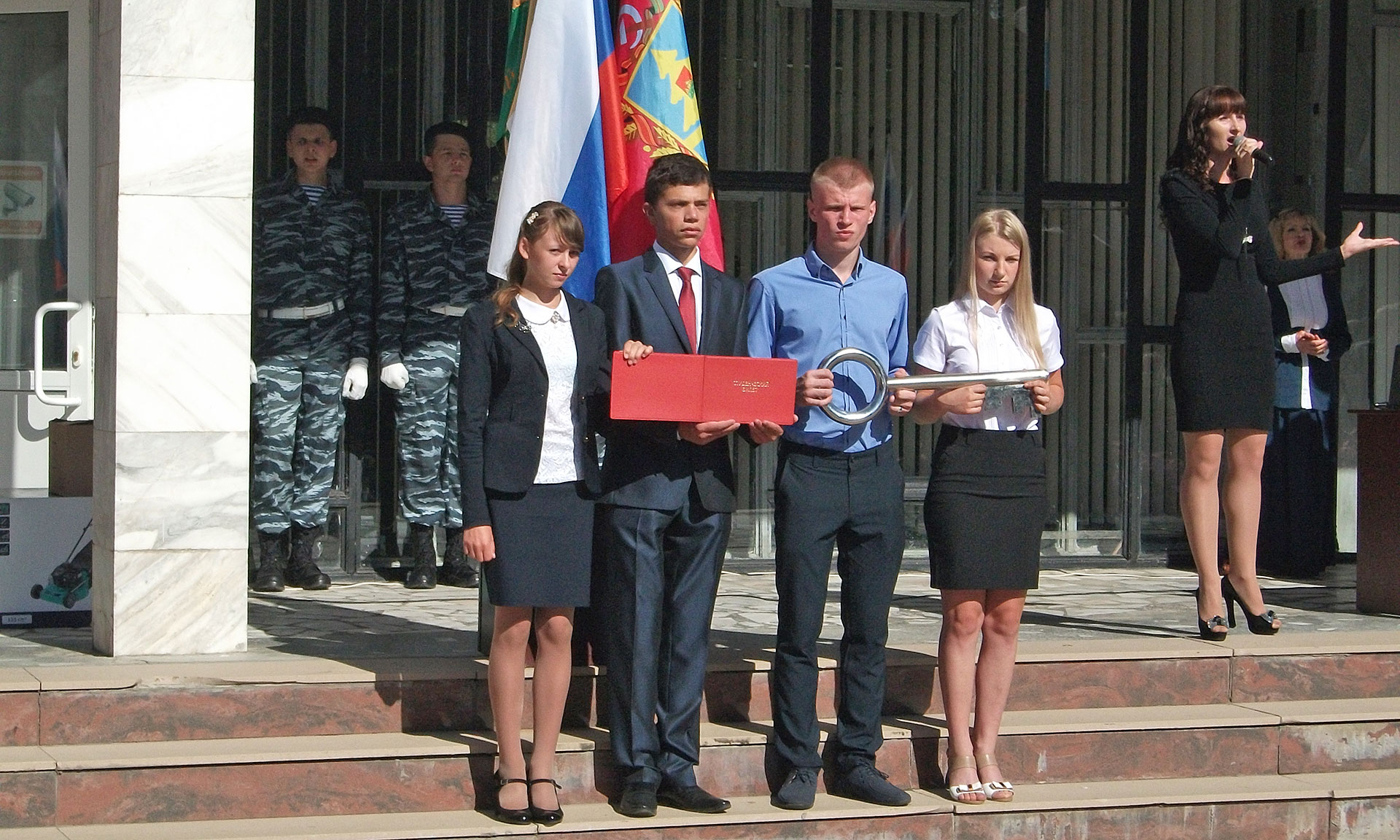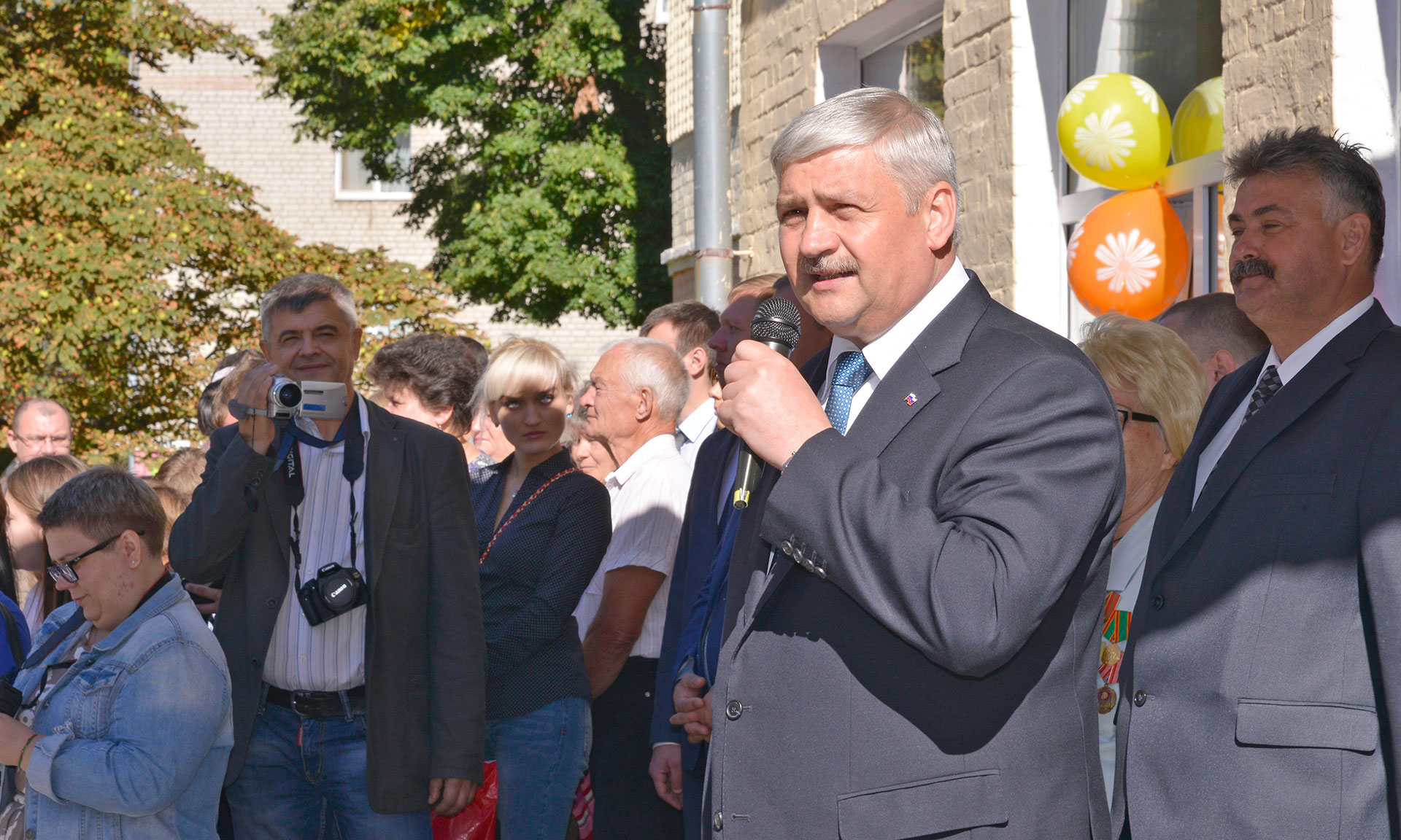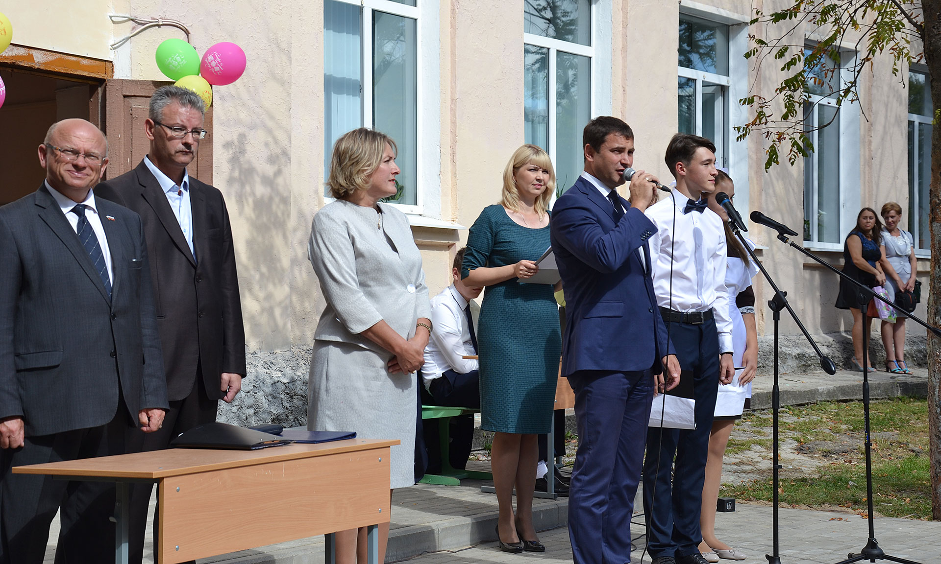 Учеников средней общеобразовательной школы № 1 города Брянска поздравили главный федеральный инспектор по Брянской области Леонид Соломатин и глава Брянской городской администрации Александр Макаров.