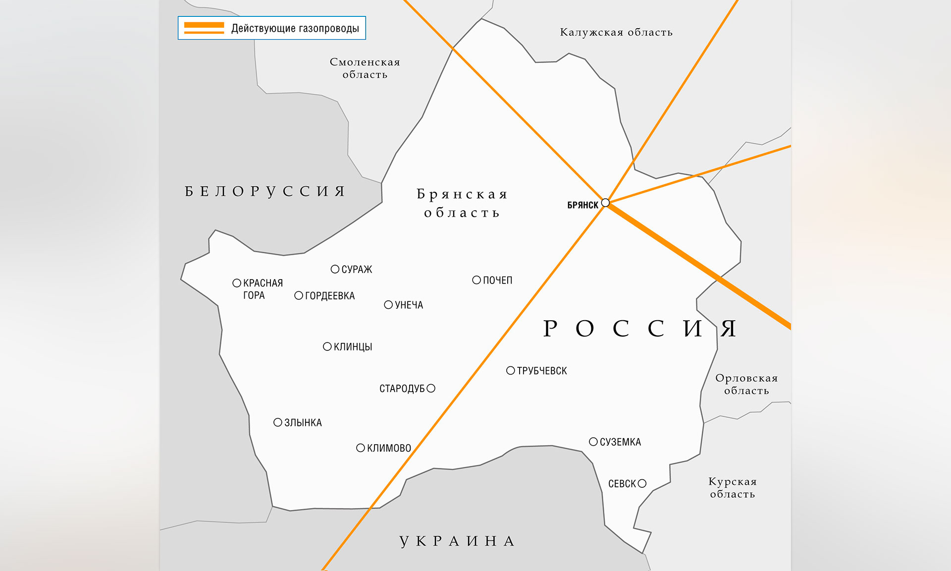 17 населенных пунктов в Брянском, Дятьковском, Жирятинском, Мглинском, Навлинском, Почепском, Суражском и Стародубском районах области. В Брянской области будет построено 25 км внутрипоселковых сетей, подготовлено к приему газа около 500 квартир и домовладений, переведено на газ три котельные. Суммарные инвестиции компании и региона согласно программе оцениваются в 427 млн руб.