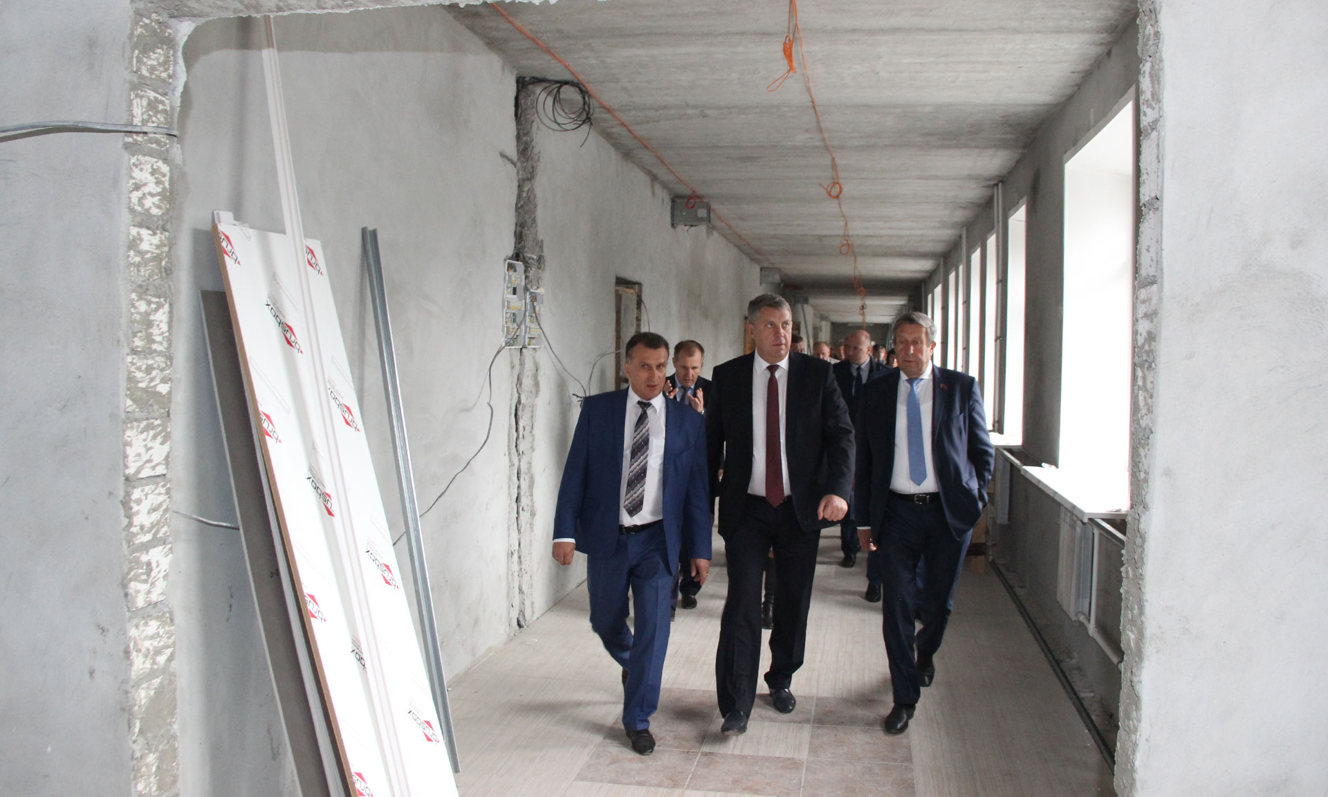 Глава региона лично убедился в том, что работы ведутся строго по графику и социально значимый объект будет сдан в установленные сроки — в декабре 2016 года. Уже завершена кирпичная кладка 4-х этажного здания, оштукатурены стены, установлены оконные блоки, ведется монтаж систем отопления и вентиляции, отделочные работы. Строители приступили и к благоустройству территории — осуществляется монтаж ограждения и укладка тротуарной плитки. Построена коробка нового спортивного зала, там также ведутся отделочные работы.
