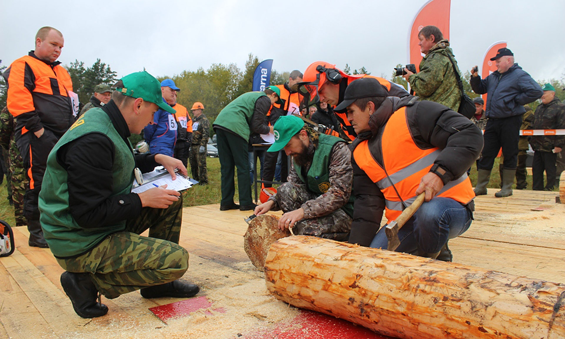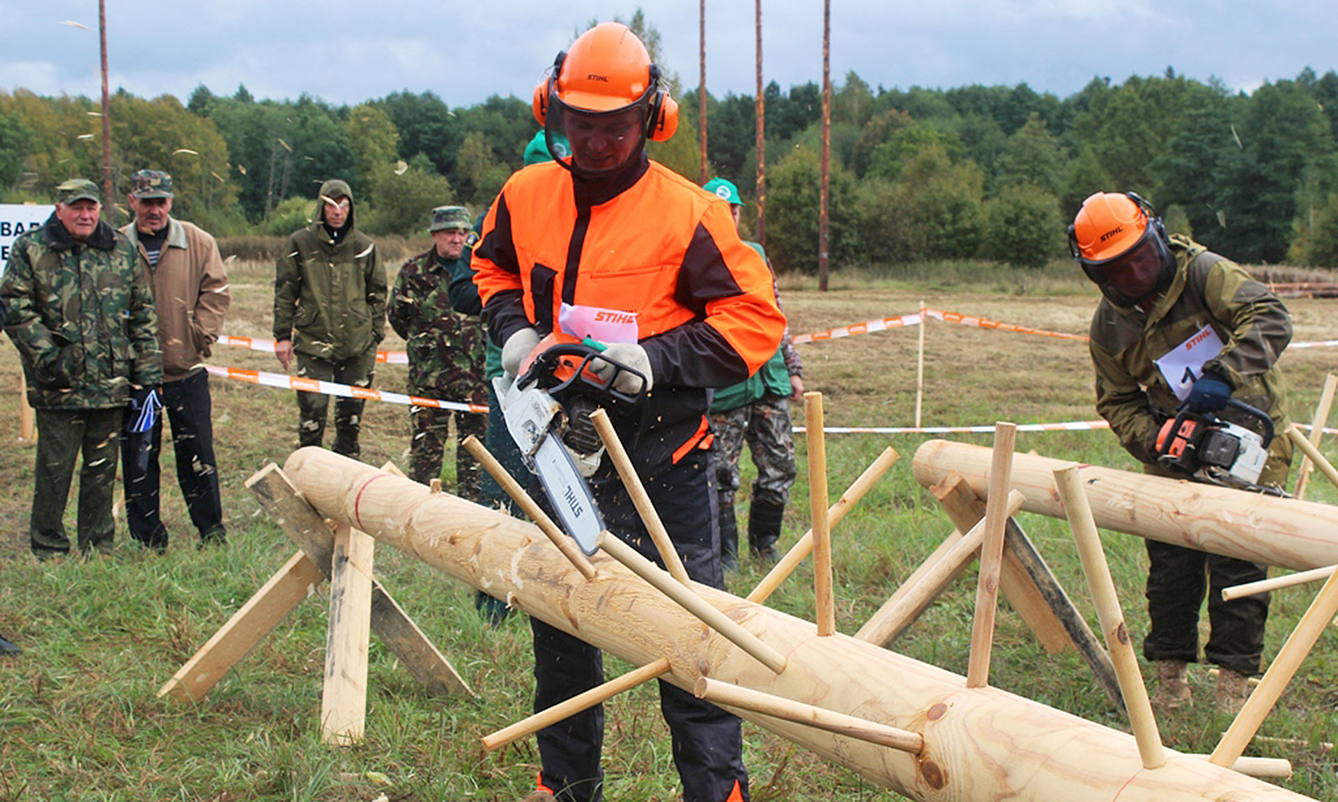 Состязания состояли из четырех этапов. Сначала участники на скорость меняли цепь на бензопиле. Следующим испытанием была раскряжевка бревна. Необходимо было точно, быстро и аккуратно отрезать диск заданной толщины от бревна, не повредив при этом настил. На третьем этапе лесорубы обрезали сучья на специально подготовленных стволах. При этом засчитывалось не только время выполнения задания. За оставленные сучки выше 5 миллиметров и повреждения ствола начислялись штрафные баллы. Самым сложным и опасным был этап «валка дерева».