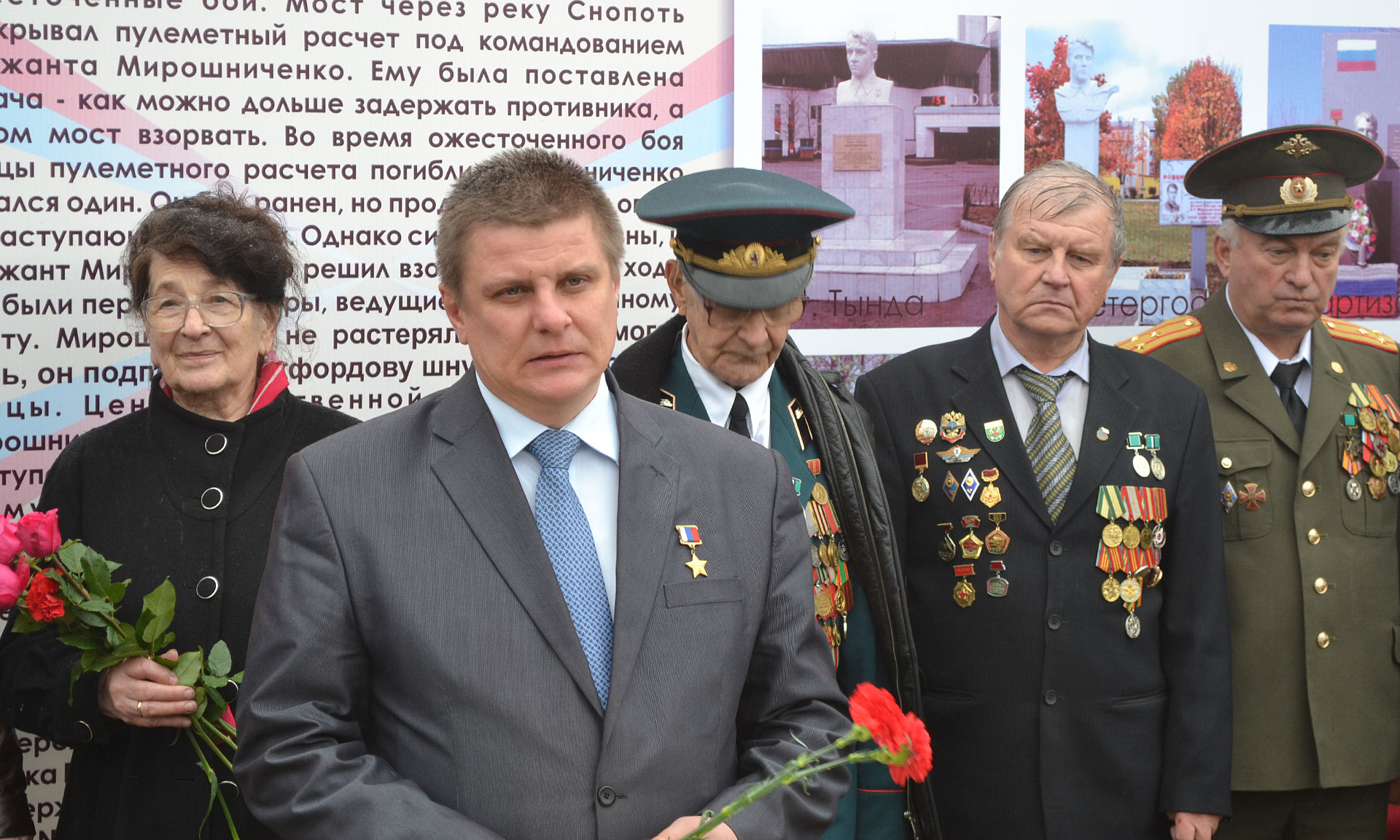 Близ села Шаровичи в Рогнединском районе состоялось торжественное мероприятие, посвященное 75-летию подвига Героя Советского Союза Виктора Мирошниченко.