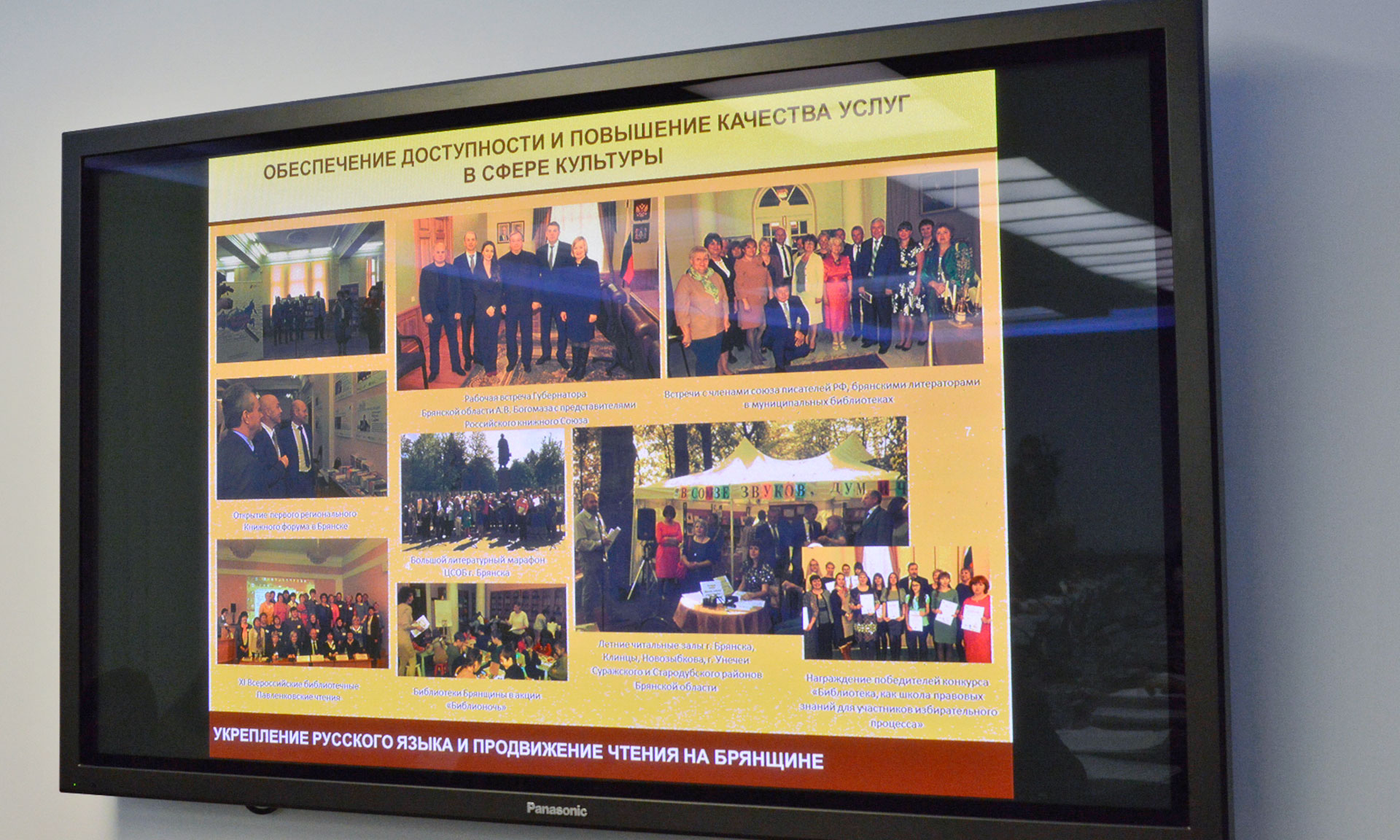 Уникальное географическое положение Брянской области на границе трех славянских государств Белоруссии, России и Украины, единые исторические корни традиционной народной славянской культуры определили одно из основных стратегических направлений реализации культурной политики региона в развитии международного и приграничного сотрудничества с регионами Белоруссии и Украины, Молдовы и других славянских государств. Стратегическим направлением реализации культурной политики в Брянской области является модернизация инфраструктуры отрасли с целью создания благоприятной культурной среды для жителей региона и обеспечения доступности услуг в сфере культуры и повышение их качества. Состояние отрасли культуры достаточно подробно и глубоко проанализировано в Стратегии государственной культурной политики до 2030 года, а наша первоочередная задача — создать необходимые условия для качественного прорыва в системе культурного обслуживания населения Брянской области.
