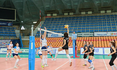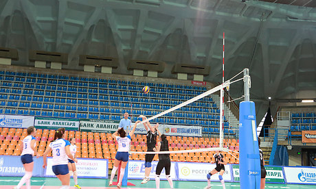 На волейбольной площадке встречались женские сборные. Наша команда уступила со счетом 3:2.