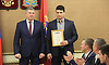 Владимир Драников вручил ключи от однокомнатной квартиры и подкову на счастье Владиславу Фролову (кстати, Александр Богомаз, открывая встречу, особенно подчеркнул тот факт, что за спортсмена просили его друзья, товарищи по команде).