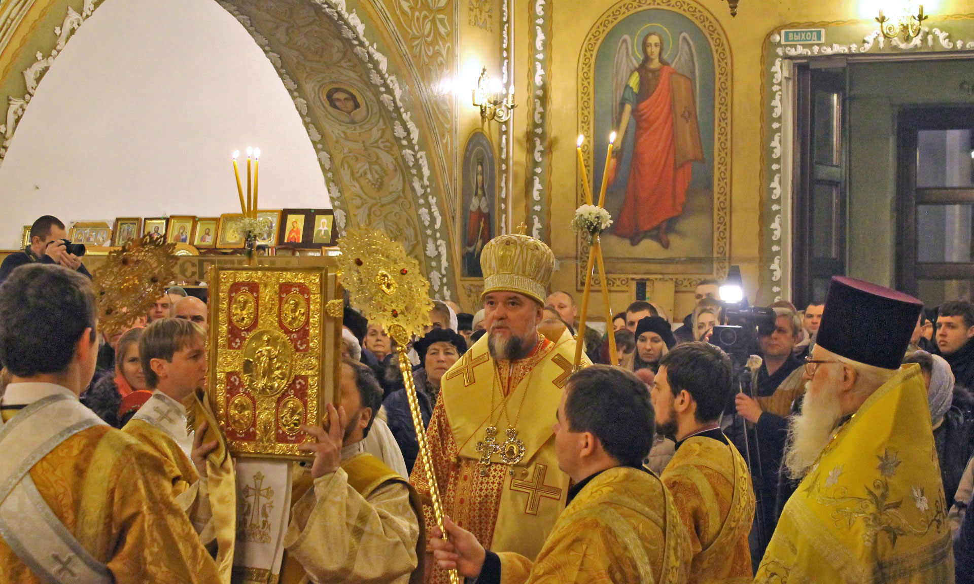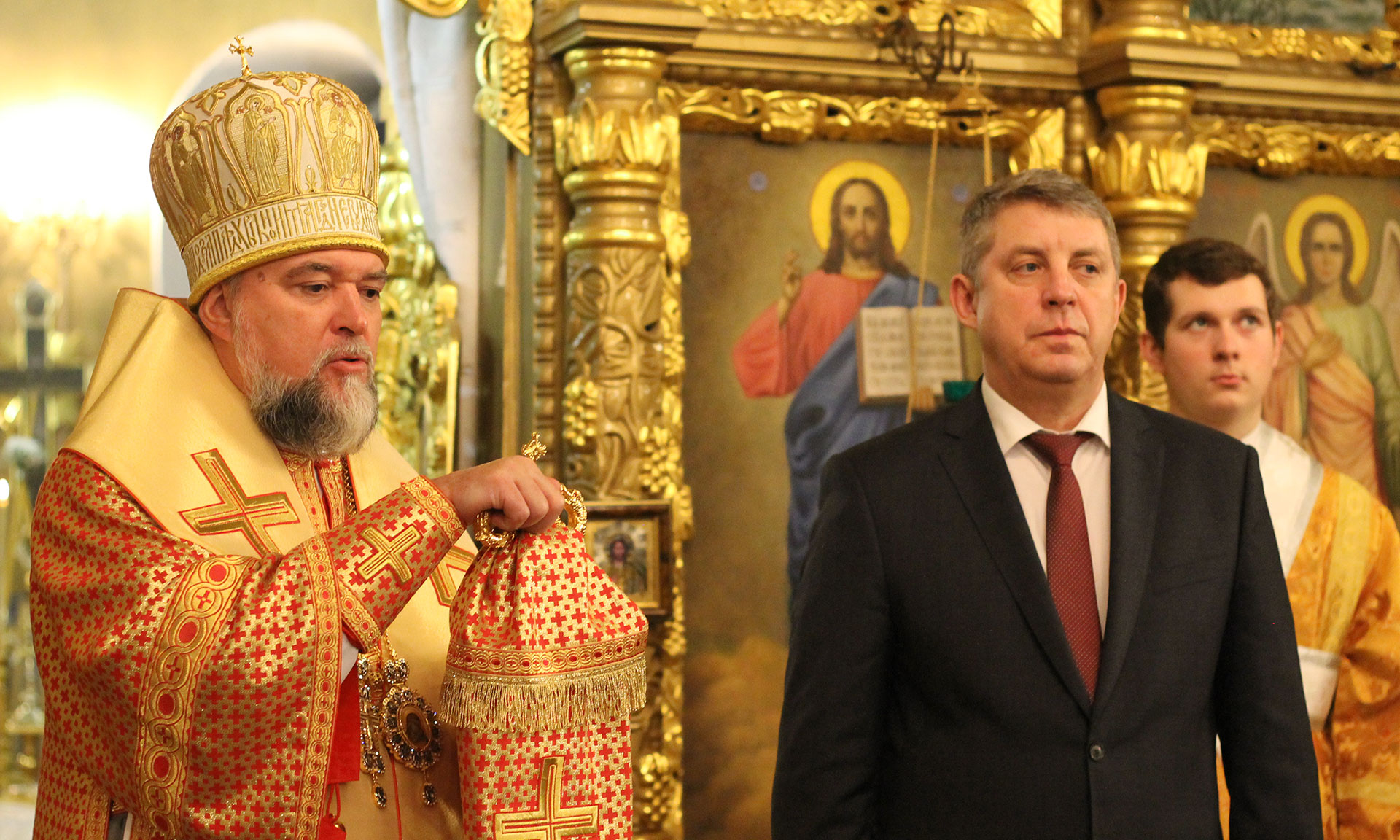 — Ваше служение представляет собой служение жертвенное, потому что Вы отдаете всего себя самого на служение Отечеству, нашей дорогой Брянской земле, людям, которые проживают на нашей территории. Мы сердечно рады Вас видеть в этот праздник здесь! Мы рады тому, что в наших отношениях имеет место быть соработничество. Вы заботитесь и имеете попечение о строительстве кафедрального собора на нашей Клинцовской земле. Это очень важно для верующих людей. Мы молитвенно желаем, чтобы помощь Божия всегда пребывала с вами, — сказал епископ Клинцовский и Трубчевский и подарил Александру Богомазу икону Николы Угодника, одного из самых почитаемых святых на Брянской земле.