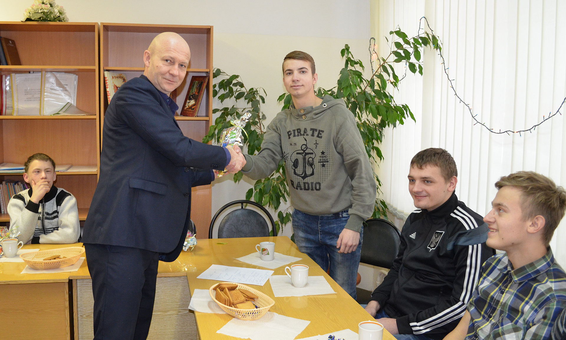 В ходе праздничного чаепития Александр Коробко от имени Губернатора Брянской области Александра Богомаза поздравил учащихся с Новым годом и Рождеством, пожелал здоровья и успехов в учебе. Заместитель Губернатора передал особые поздравления от главы региона Денису Кирику. Он, инвалид по слуху, в октябре 2016 года стал победителем регионального чемпионата детей с инвалидностью «Абилимпикс», а в ноябре 2016 года занял 2-е место в национальном этапе чемпионата.