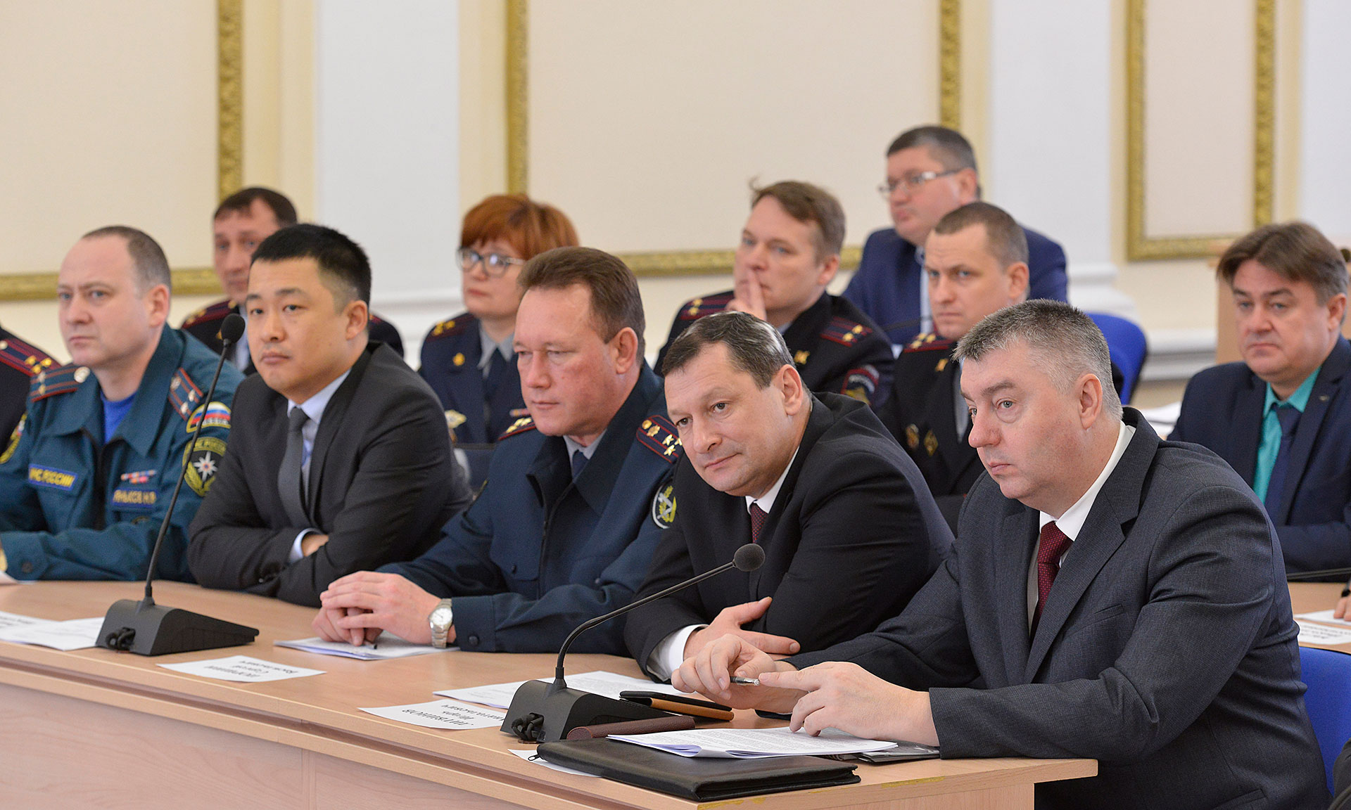 В мероприятии приняли участие председатель областной Думы Владимир Попков, главный федеральный инспектор по Брянской области Леонид Соломатин, прокурор области Александр Войтович, начальник УМВД России по Брянской области Валентин Кузьмин, начальник управления ФСБ России по Брянской области Сергей Блинов, руководитель Следственного управления Следственного комитета Российской Федерации по Брянской области Игорь Литвинов, начальник Пограничного управления ФСБ России по Брянской области Сергей Станкевич, врио начальника УФСИН России по Брянской области Сергей Поршин, члены постоянно действующего координационного совещания по обеспечению правопорядка и антинаркотической комиссии, руководители заинтересованных исполнительных органов государственной власти Брянской области, главы администраций городских округов и муниципальных районов Брянской области (на местах в своих студиях).