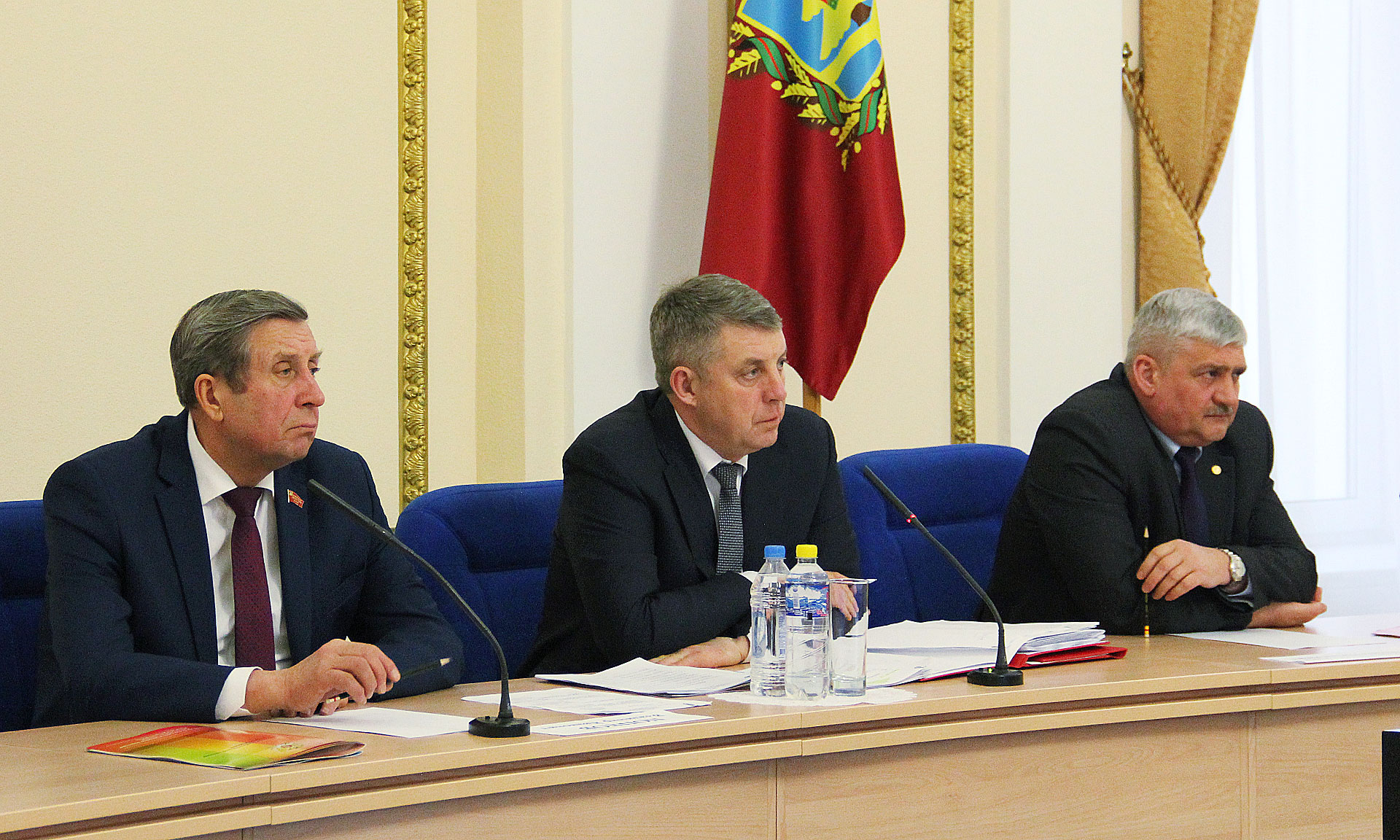 В совещании приняли участие председатель Брянской областной Думы Владимир Попков, главный федеральный инспектор по Брянской области Леонид Соломатин.