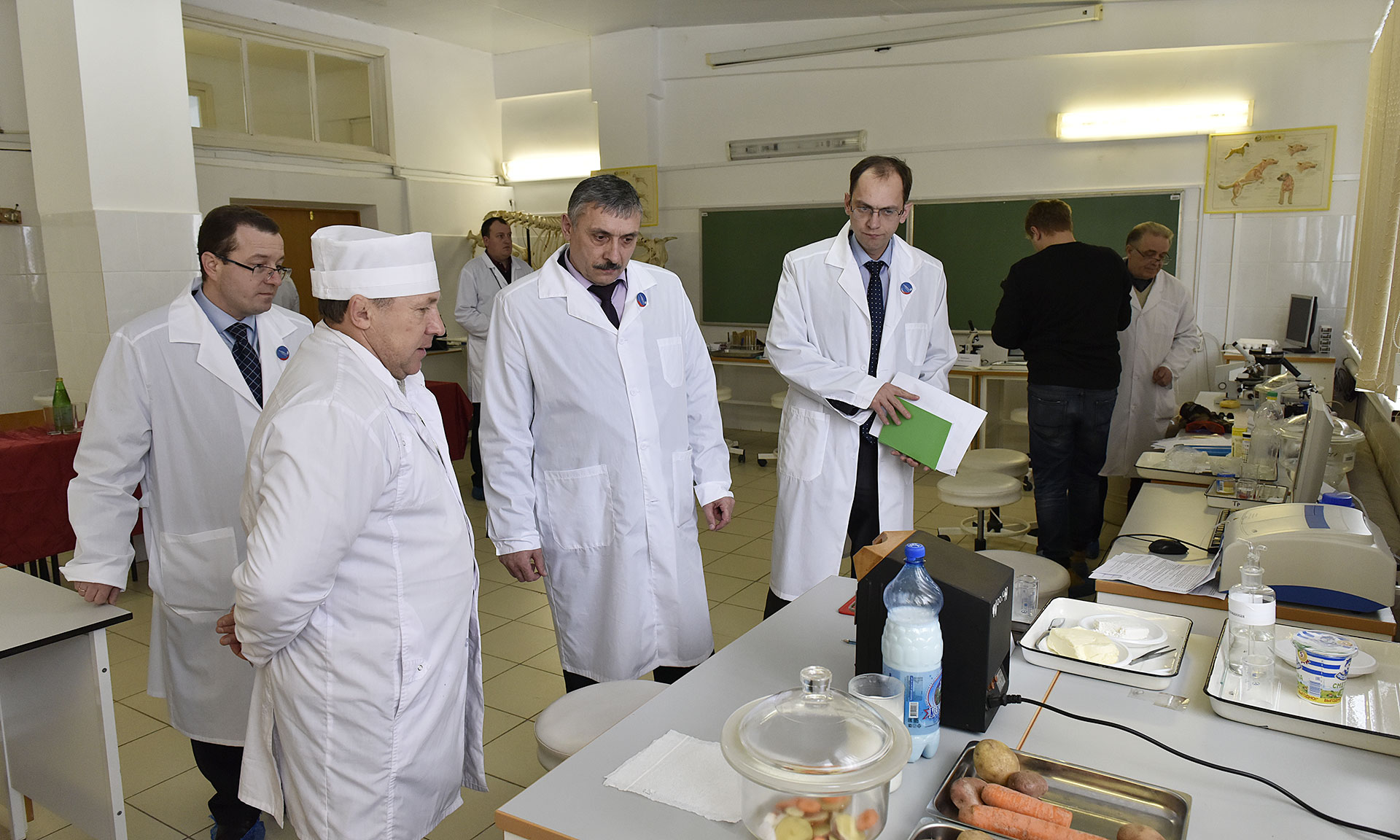 Участники конкурса выполняли клиническое обследование животных, птицы, в том числе с использованием ультразвуковой диагностики. Проводили исследование продуктов животноводства на качественные показатели. Площадку также посетил начальник управления ветеринарии Брянской области Николай Шлык.