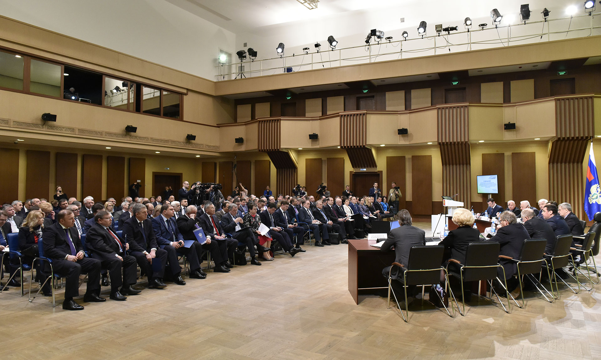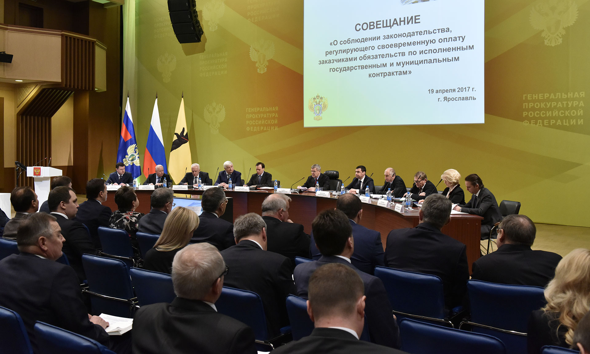 Открыл мероприятие Генеральный прокурор Российской Федерации Юрий Чайка. С основным докладом выступил первый заместитель Генерального прокурора Российской Федерации Александр Буксман. Участники совещания отметили, что органы прокуратуры в Северо-Западном, Северо-Кавказском, Центральном и Южном федеральных округах проводят значительную работу, направленную на погашение задолженности перед предпринимателями по государственным и муниципальным контрактам.
