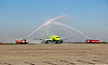 Airbus A319 приземлился в брянском аэропорту согласно расписанию в 9.25. Красивое и современное воздушное судно привлекло к себе внимание журналистов и почетных гостей. По сложившейся мировой традиции авиации первый борт встречали через водную арку, образованную двумя пожарными машинами. У входа в аэровокзал пассажиров и встречающих радовали своим творчеством брянские коллективы. Здесь же и провели торжественную церемонию открытия рейсов Брянск-Санкт-Петербург.