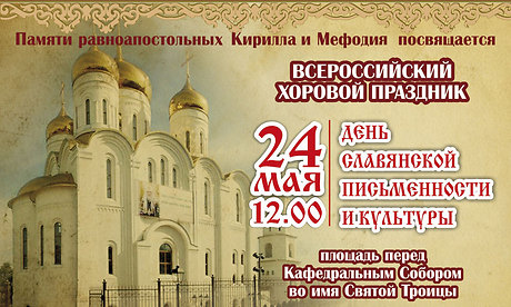 24 мая 2017 года в 12.00 в Брянске и во всех муниципальных образованиях Брянской области состоятся праздничные концерты хоровых коллективов, посвященные Дню славянской письменности и культуры.