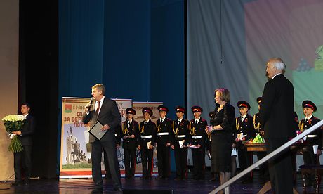 — Всякий раз, когда я приезжал в Брянск, я всегда шел в лес, потому что «Шумел сурово Брянский лес…». Это у меня осталось с детства, это для меня осталось навсегда, так же, как Сталинград, Ленинград, как и другие великие города, отстоявшие независимость нашей страны, — так начал свое выступление Василий Лановой.