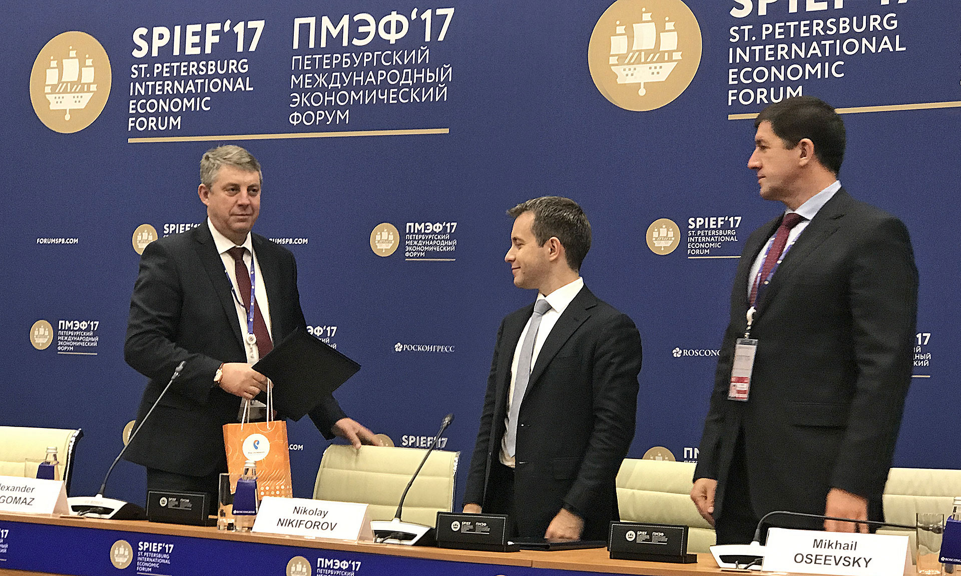1 июня на Петербургском международном экономическом форуме Министр связи и массовых коммуникаций РФ Николай Никифоров, Губернатор Брянской области Александр Богомаз и президент ПАО «Ростелеком» Михаил Осеевский подписали трехстороннее соглашение о совместной деятельности в сфере реализации инвестиционных проектов на территории Брянской области.