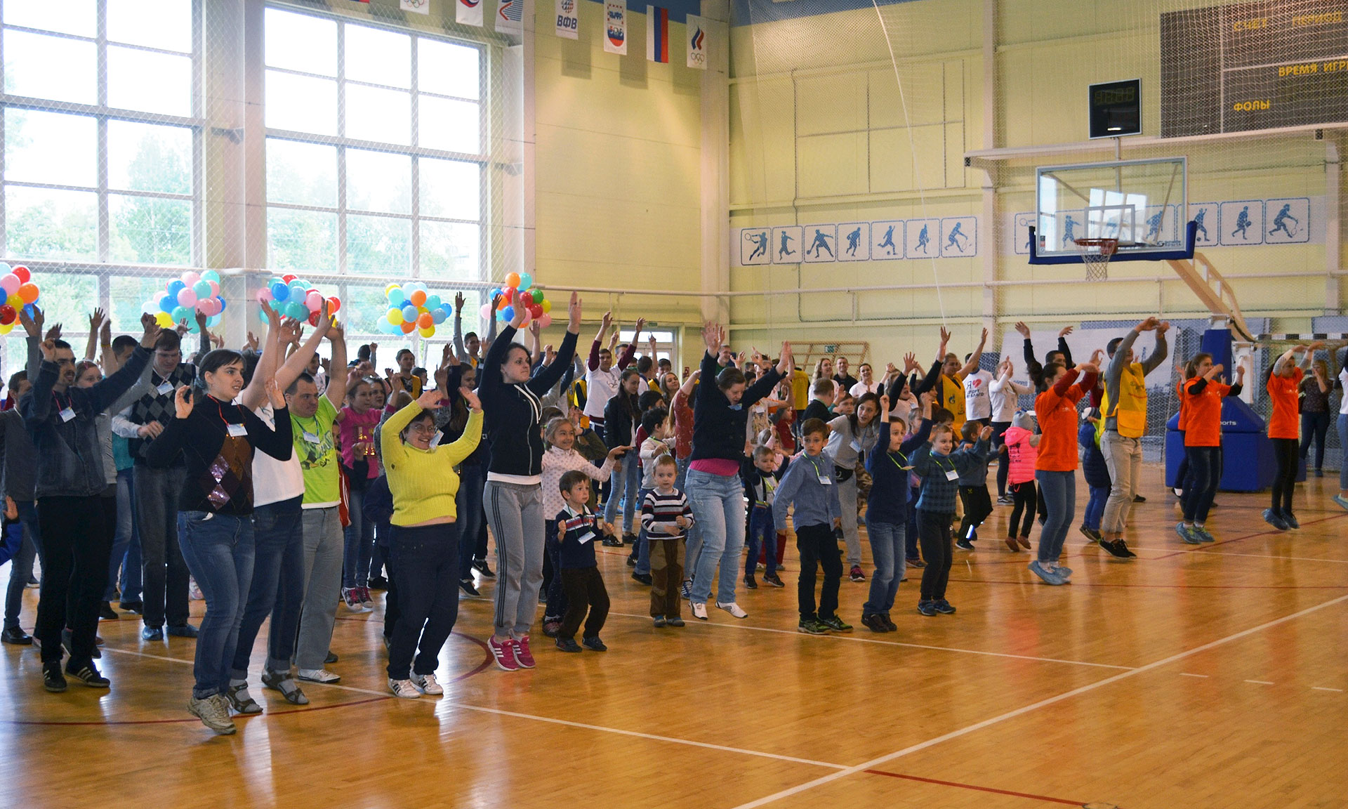 После этого всех желающих пригласили на веселую музыкальную разминку. Более 200 ребят с ограниченными возможностями здоровья и волонтеров приняли участие в уроке ритмической гимнастики под песню «Вперед, Россия!».