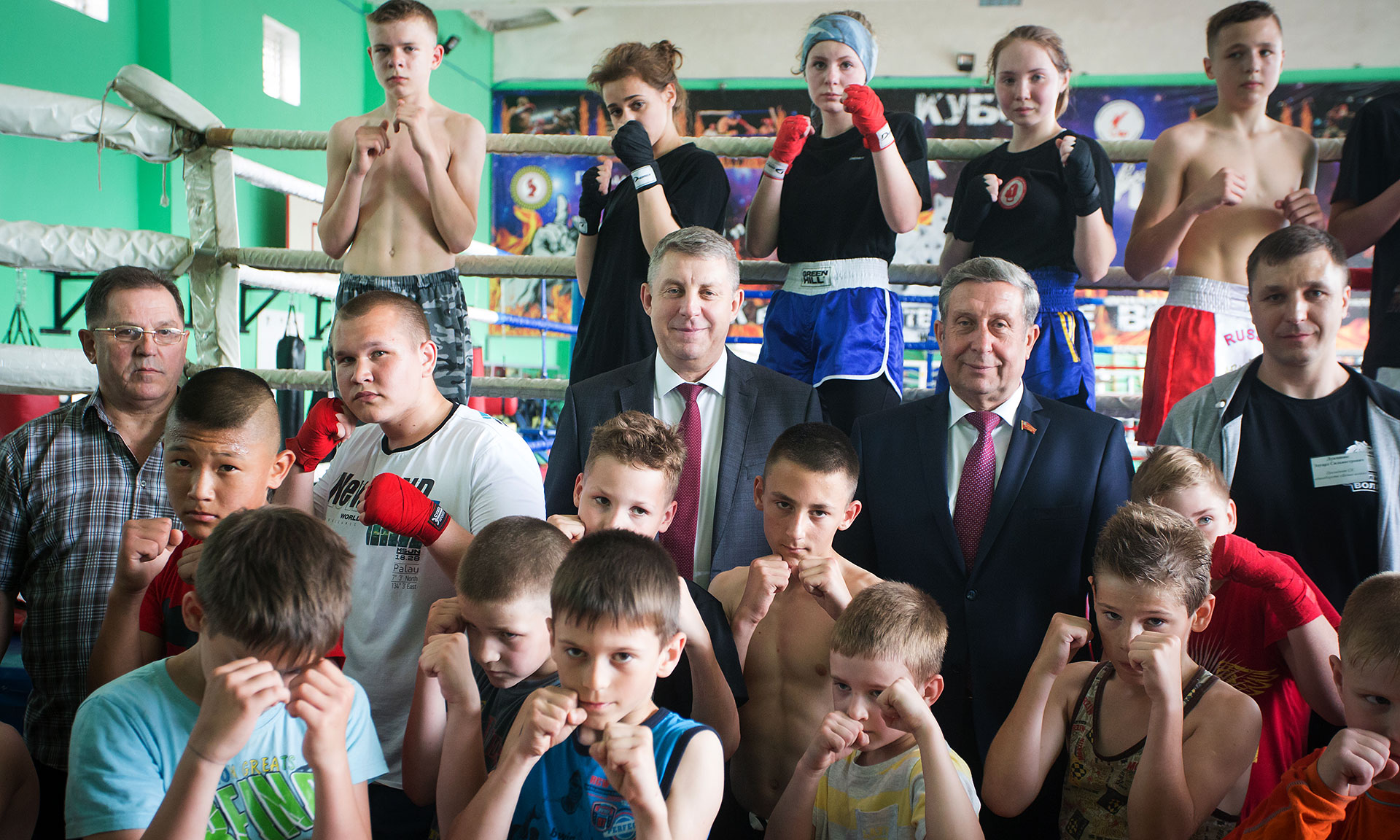 Губернатор пообщался с ребятами, которые занимаются в спортивном клубе единоборств «Белые волки», побеседовал с президентом спортивного клуба Эдуардом Лукошюсом и главным тренером федерации кикбоксинга Брянской области, тренером-преподавателем ДЮСШ «Олимп» Брасовского района Сергеем Ястребовым. Они рассказали, что в 2015 году при МБУ ДО ДЮСШ «Олимп» была создана секция кикбоксинга. При поддержке администрации Брасовского района, руководства Брасовского промышленно-экономического техникума, президента Федерации кикбоксинга Брянской области Олега Панина отремонтирован спортивный зал техникума для занятий кикбоксингом, приобретён инвентарь.