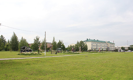 На территории школы расположена спортивная площадка, футбольное поле с газонным покрытием, хоккейный корт, учебно-опытный земельный участок. В школе есть собственный автобус, гараж, подвал для хранения овощей.