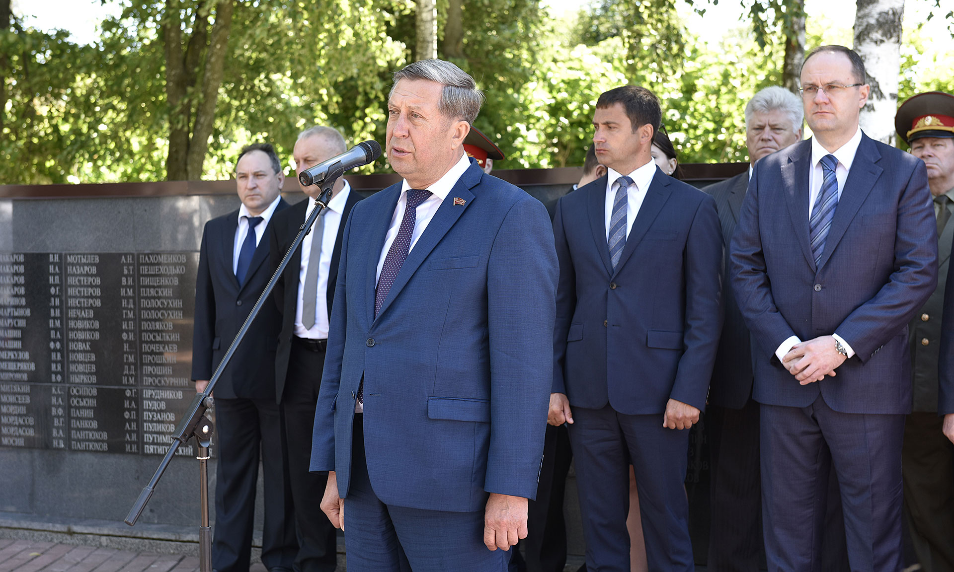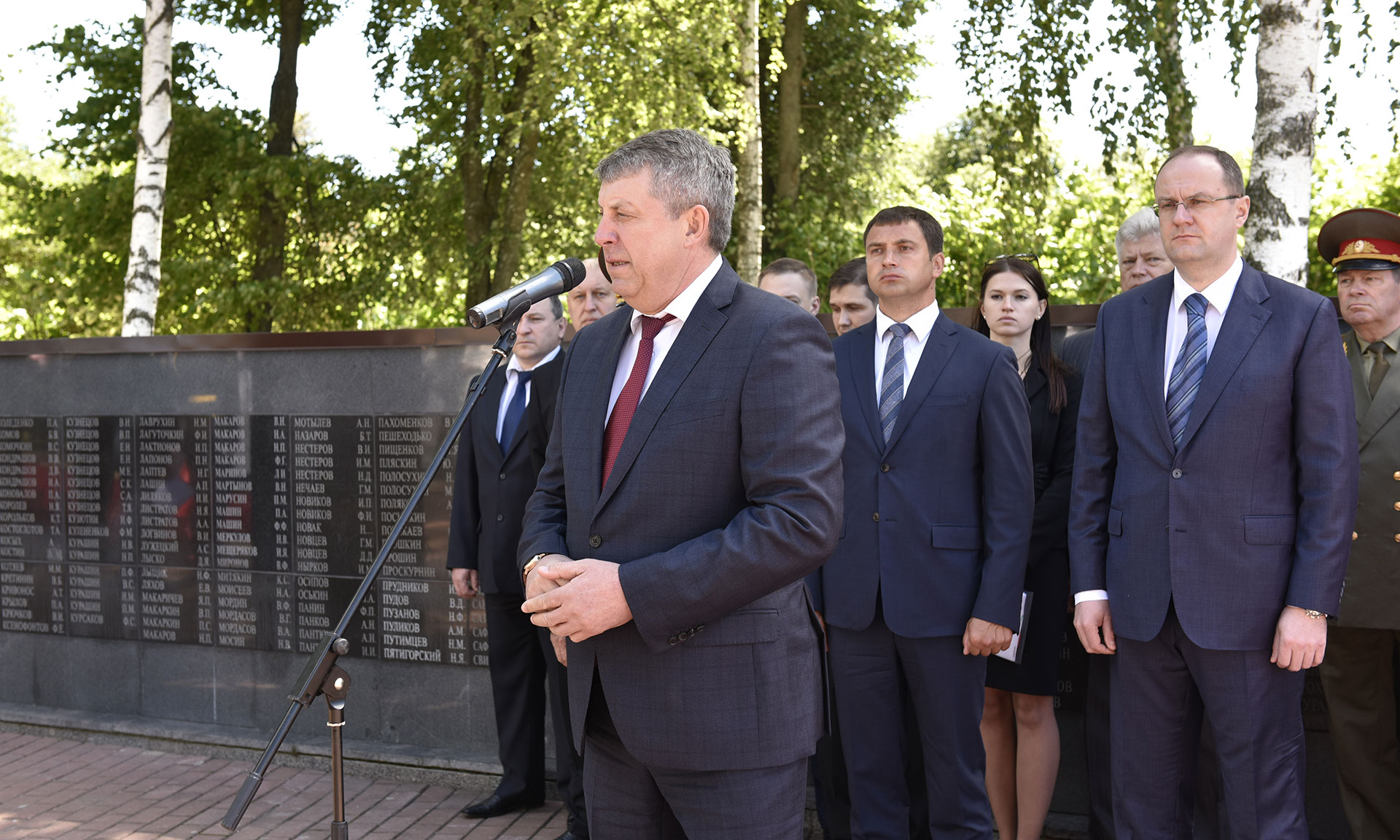 — На Руси всегда помнили и чтили воинов, их ратные подвиги во имя Отечества. Миллионы могил на русской земле и за ее рубежами хранят вечный покой и воинскую честь павших солдат. Сегодня, в канун Дня памяти и скорби, мы еще раз выражаем слова безмерной благодарности нашим отцам, дедам прадедам — всем тем, кто ценой собственной жизни отстоял свободу и независимость нашей Родины. Великая благодарность всем, кто сохраняет для потомков имена павших героев, кто рассказывает подрастающему поколению о великом подвиге великого народа. Желаю ветеранам, всем жителям Брянщины крепкого здоровья, уверенности в завтрашнем дне под мирным небом нашей великой Родины — России, — пожелал председатель Брянской областной Думы Владимир Попков и от лица депутатского корпуса поблагодарил руководство ООО «Газпром Трансгаз Москва».