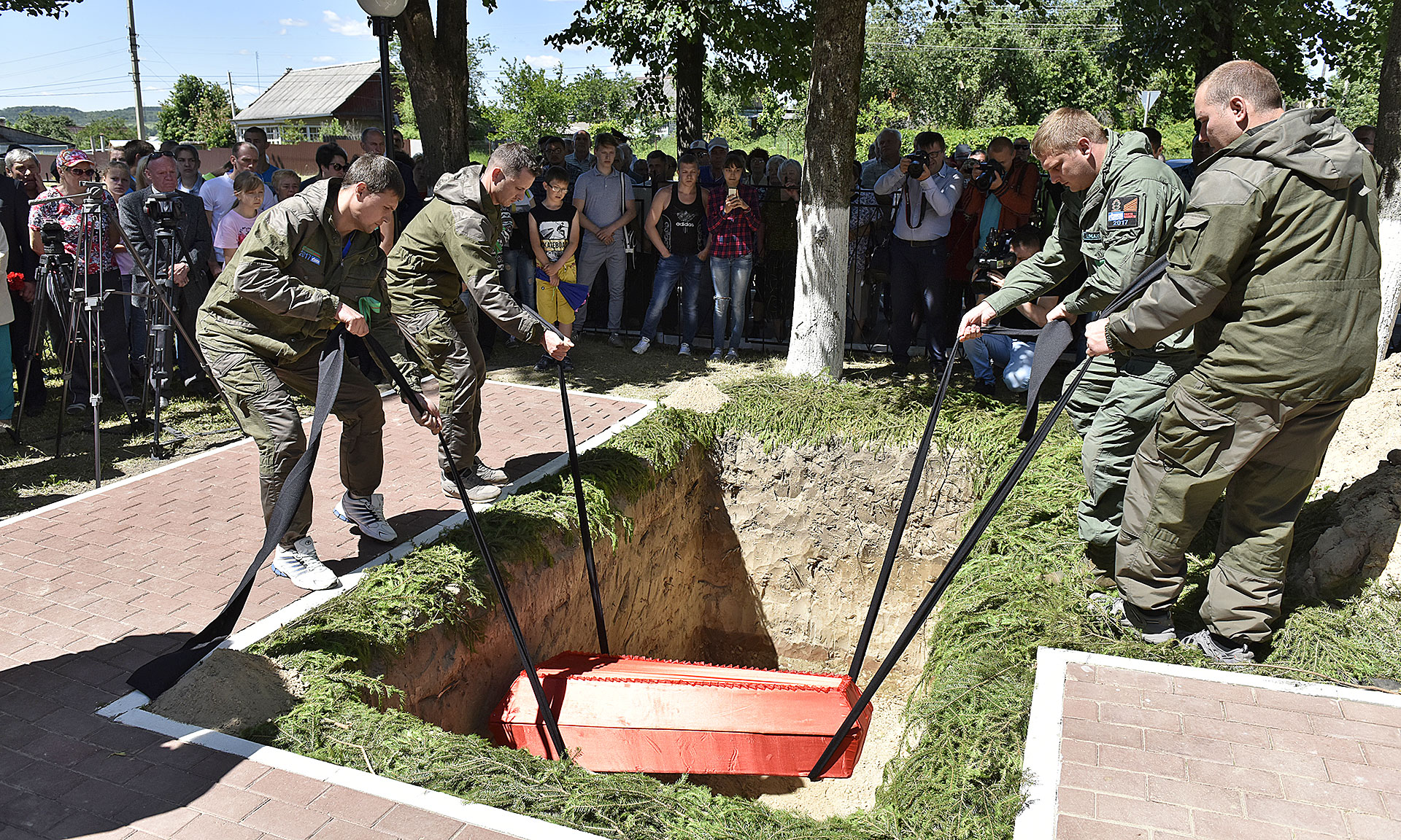 После церемонии отпевания Губернатор Брянской области Александр Богомаз, генеральный директор ООО «Газпром трансгаз Москва» Александр Бабаков и почетные гости по христианскому обычаю бросили в могилы по горсти земли.