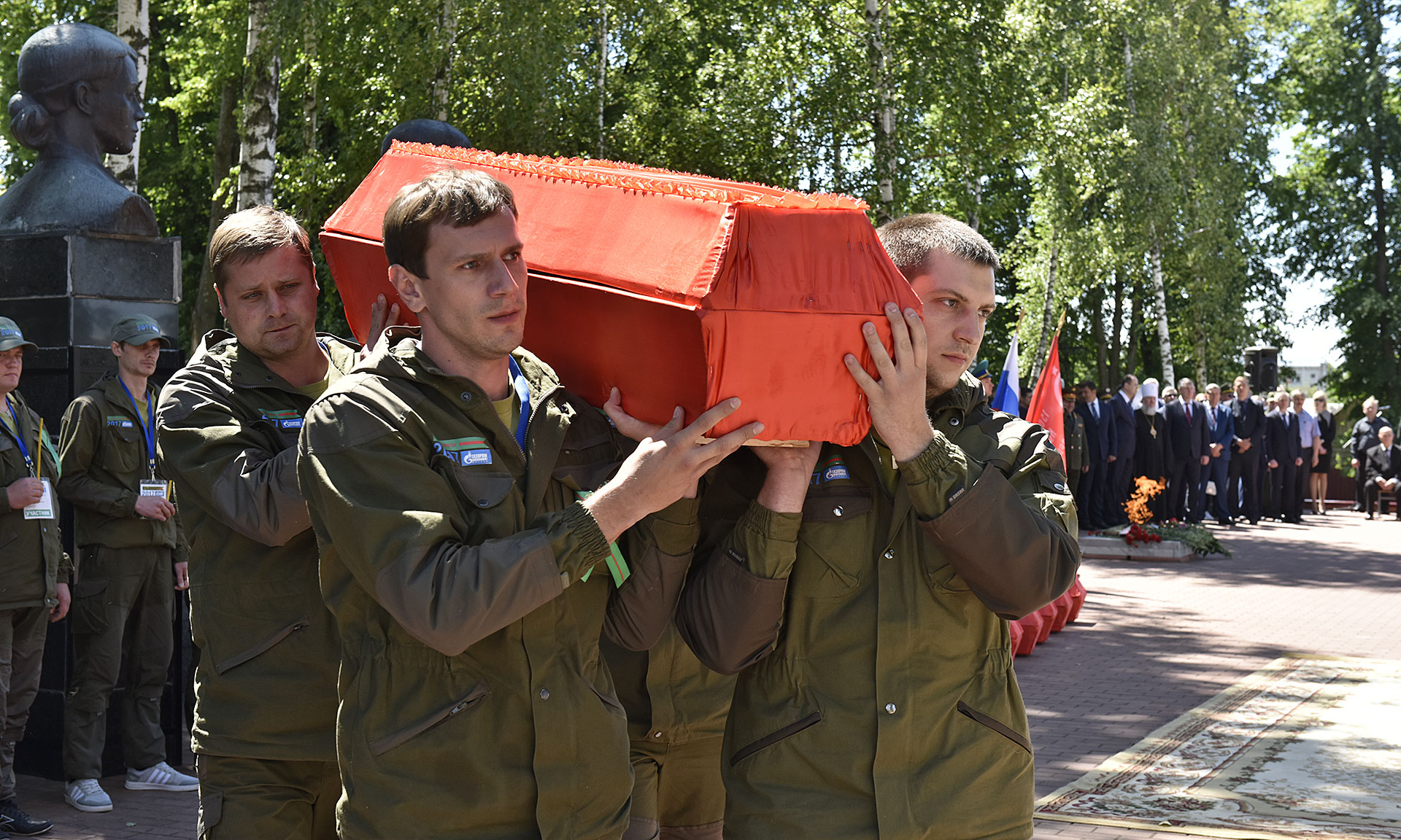 Мы на протяжение многих лет занимаемся «Вахтой памяти». Наши поисковые отряды работают во всех областях. Наша задача — отработать в каждом из регионов, которые входят в зону нашей ответственности, заниматься раскопками, поднимать безымянных солдат, мирных граждан, подпольщиков, партизан, предавать их земле, чтобы они находили свое упокоение, чтобы нынешнее поколение могло приходить к этим местам и отдавать те почести павшим, которых они достойны.