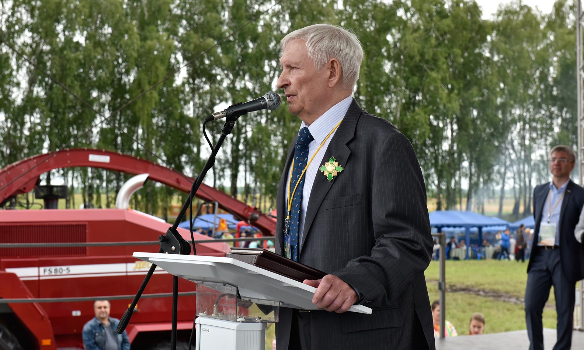 — Дорогие друзья! Сегодня мы вручили награду от руководителя местного самоуправления Российской Федерации Виктора Борисовича Кидяева Дмитрию Константиновичу Добронравову. Я думаю, она досталась ему по заслугам. Это человек, который стоял у истоков «Дня брянского поля-2017», начиная с 2015 года, когда проводил его на своем предприятии. Это хороший пример для многих жителей Российской Федерации. Человек, который в 2010 году ничего не имел, одно желание, за эти семь лет, используя те возможности, которые дает наше российское Правительство, наша великая страна, сегодня в Навлинском районе, а это не лучший район для ведения сельского хозяйства, это район рискованного земледелия на территории Брянской области, так вот он сегодня обрабатывает около 20 тысяч гектаров земли, получает урожаи, которыми может гордиться Европа, и по производству зерновых, и картофеля. А самое главное, он показывает, как нужно жить и работать на нашей брянской, российской земле, и гордиться великой страной и великим народом! — подчеркнул Губернатор Брянской области Александр Богомаз.