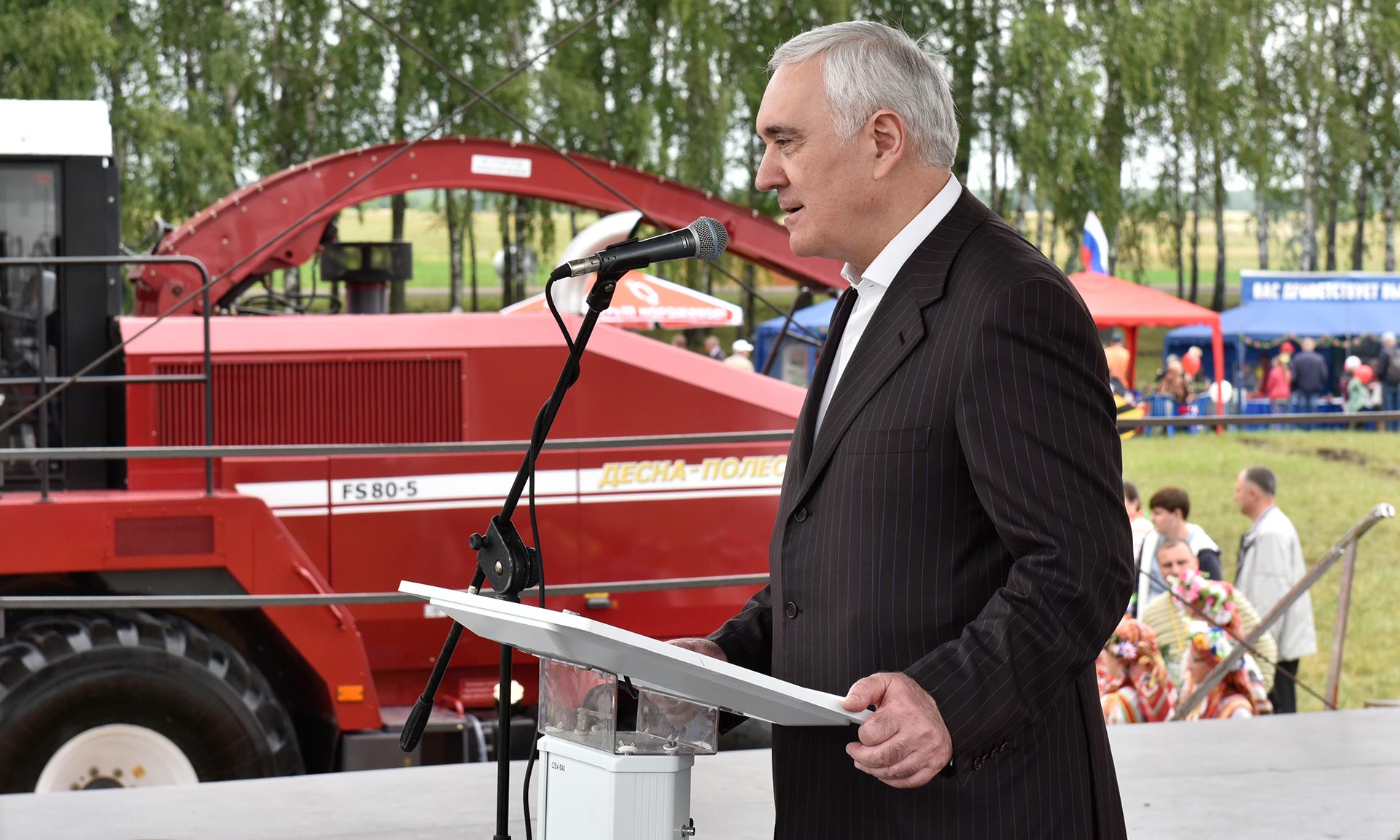 — Уважаемый Александр Васильевич, уважаемый Мурат Магомедович, друзья, гости праздника, поздравляю вас! Сегодня, несмотря на этот пасмурный день, сотни предприятий, сотни гостей пришли на этот праздник. Я могу смело сказать, что это не День брянского поля, это День российского поля! Когда мы видим здесь наших сельхозпроизводителей, когда мы видим тех, кто готовит технику, тех, кто вкладывается в наше сельское хозяйство, мы можем сказать смело, что Россия себя прокормит и накормит еще многих других. Именно благодаря энтузиазму тех людей, который собрались здесь, тех руководителей, которые помогают развивать наше сельское хозяйство, мы можем смело сказать, что мы проживем!