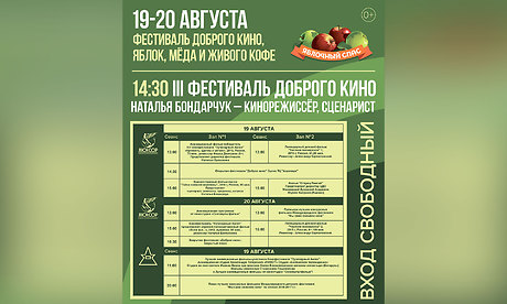 Фестиваль доброго кино, яблок, меда и живого кофе «Яблочный Спас» состоится в Брянске 19—20 августа.