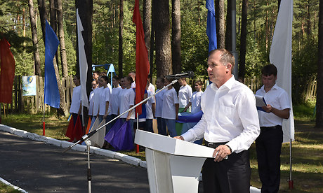 — Дорогие ребята! Вы уже услышали, что взрослые высказывают большие надежды в отношении вас. Именно здесь вам удастся поближе познакомиться и узнать, какие взрослые проблемы не удается решить нам, и что можете сделать вы. А чтобы знать, что делать, нужно поближе познакомиться друг с другом. Я вам желаю познакомиться с достопримечательностями Брянской области. Еще вам желаю общаться друг с другом, узнавать, какие проблемы беспокоят молодежь того или иного города, республики. Желаю вам учиться вырабатывать меры разрешения этих проблем вместе. Я уверен, что на долгие годы в вашей памяти останется пребывание в этом лагере.