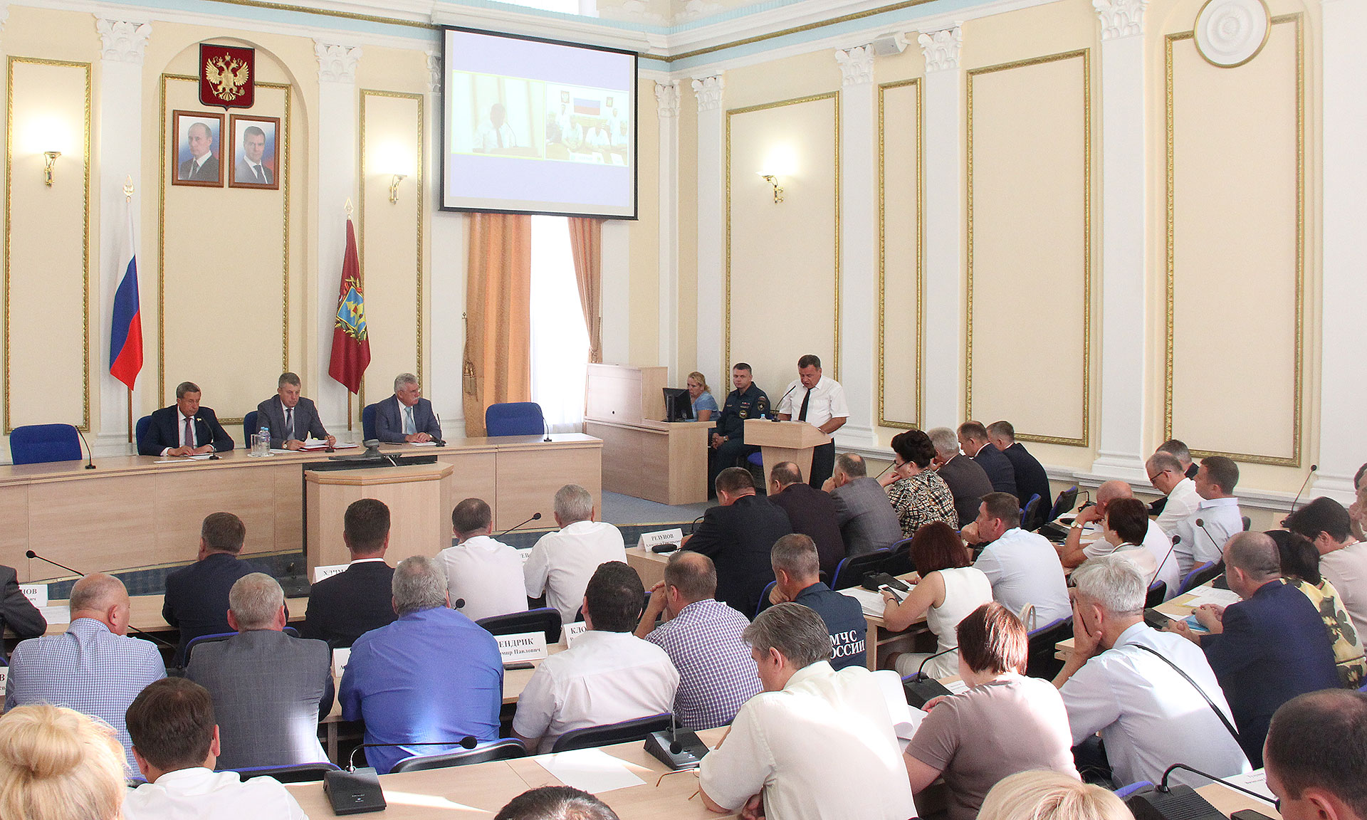 В совещании приняли участие председатель Брянской областной Думы Владимир Попков, главный федеральный инспектор по Брянской области Афанасий Киселев.