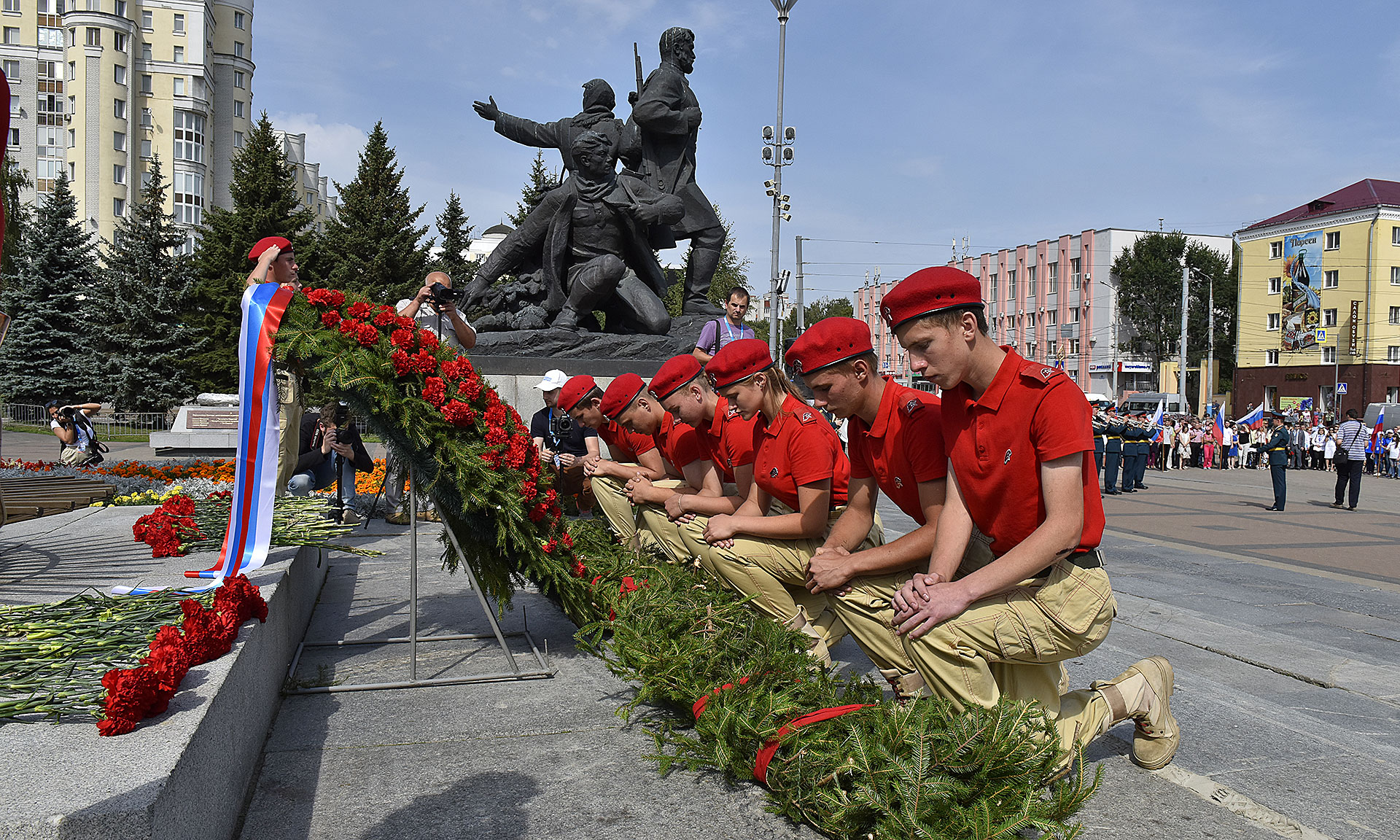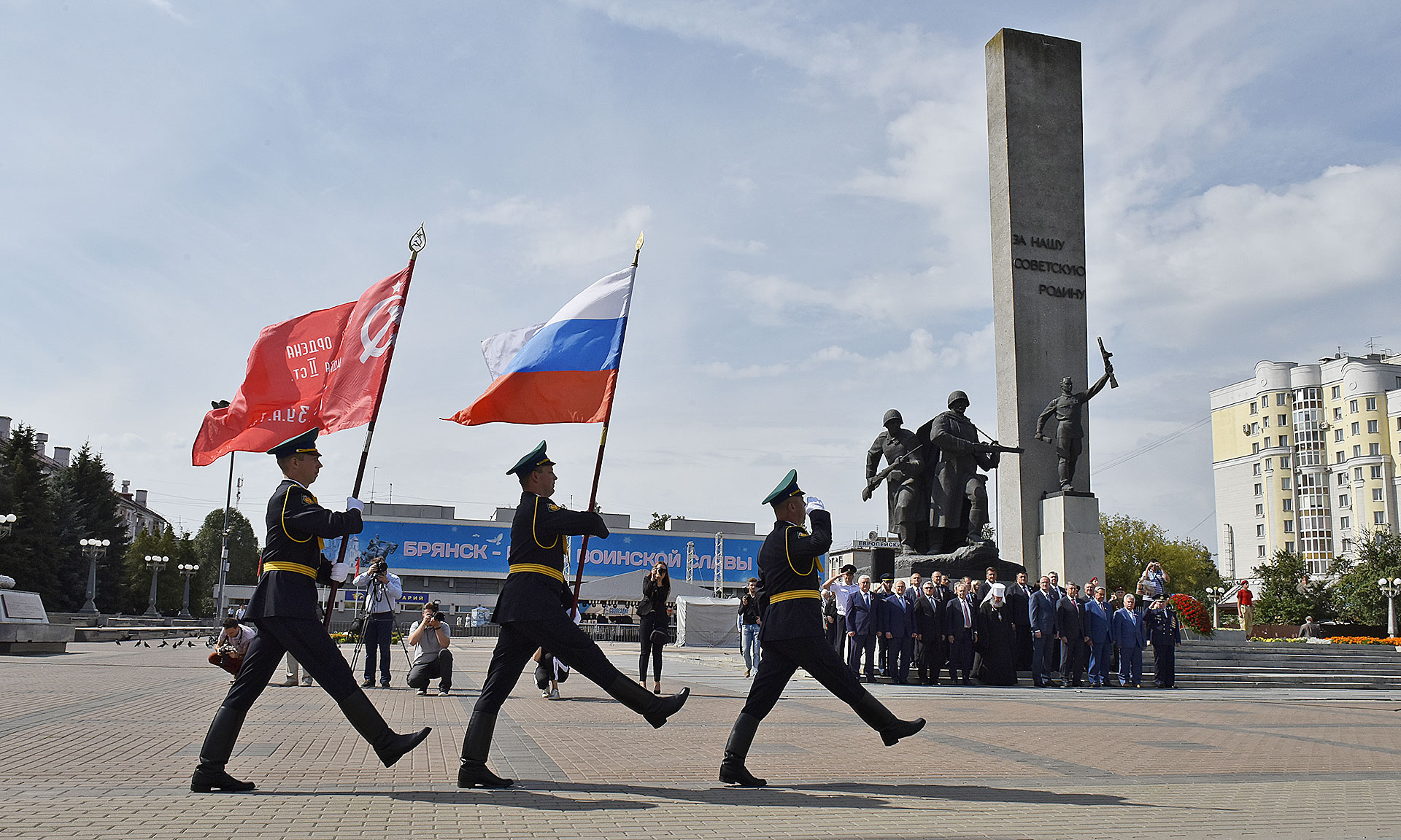Цветы к памятнику возложили председатель Брянской областной Думы Владимир Попков, главный федеральный инспектор по Брянской области Афанасий Киселев, Его Высокопреосвященство митрополит Брянский и Севский Александр, глава города Брянска Александр Хлиманков, глава Брянской городской администрации Александр Макаров, представитель Брянского областного Совета ветеранов войны, труда, Вооруженных Сил и правоохранительных органов, подполковник медицинской службы Александр Мазилов, Герой Советского Союза Иван Кашин, Герой России Александр Постоялко, председатель Брянской областной общественной организации ветеранов войны и военной службы Василий Бударин, вице-губернатор Брянской области Александр Резунов, заместители Губернатора, председатель Брянского областного суда Евгений Быков, начальник Пограничного управления ФСБ России по Брянской области Сергей Станкевич, начальник Главного управления МЧС России по Брянской области Вадим Уваркин, военный комиссар Брянской области Андрей Соломенцев, начальник Управления Федеральной службы войск национальной гвардии Российской Федерации по Брянской области Константин Обушев, начальник Департамента ПАО «Газпром» Александр Беспалов, заместитель начальника Департамента — начальник Управления развития общественных связей ПАО «Газпром» Роман Сахартов, заместитель начальника Управления развития общественных связей Департамента ПАО «Газпром» Инна Данилова, заместитель генерального директора ООО «Газпром трансгаз Москва» по управлению персоналом и корпоративной защите Евгений Безбородкин, руководители территориальных федеральных органов государственной власти в Брянской области.