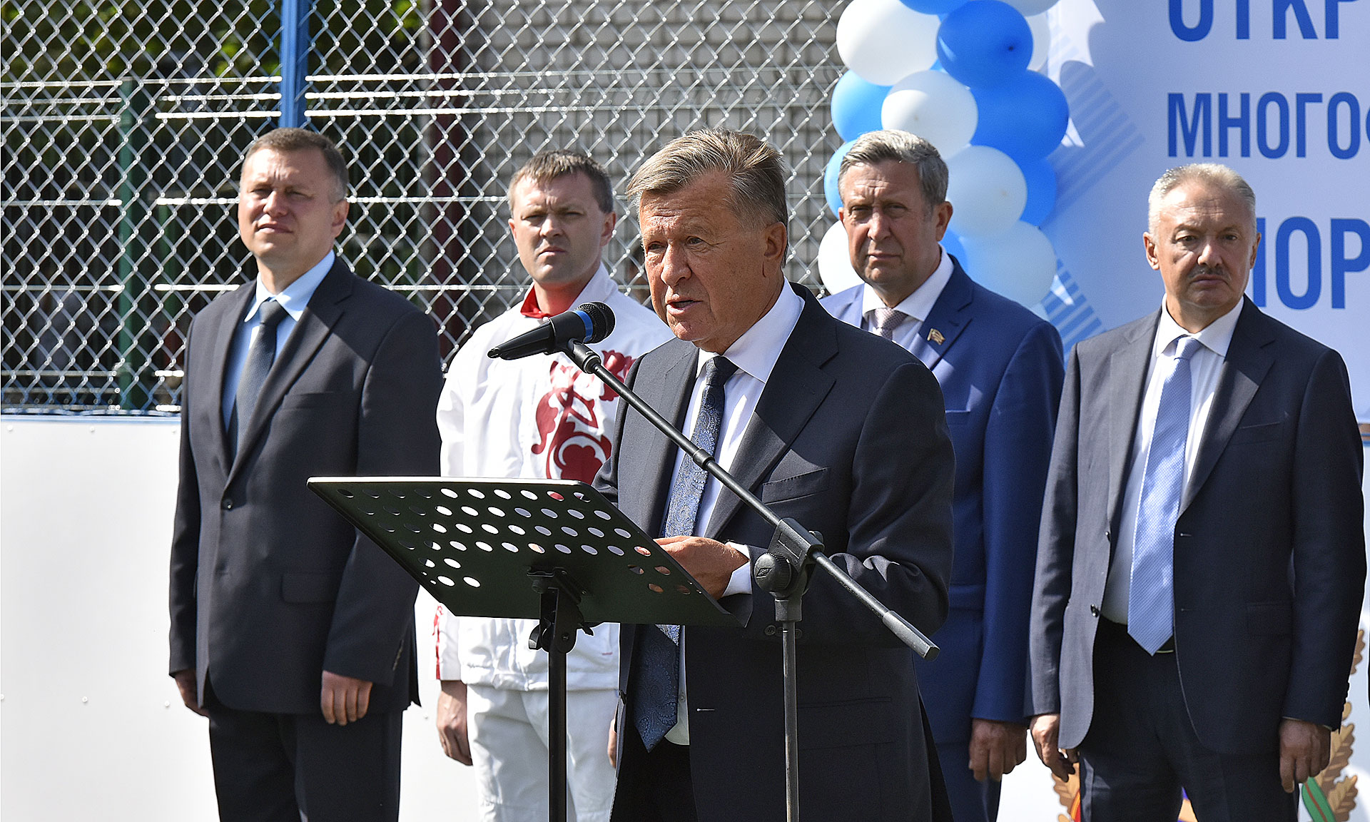 Теперь у вас есть замечательная возможность для проведения тренировок, занятий спортивными играми. Я уверен, что на этой площадке начнут свои первые шаги в спорте и будущие чемпионы. Желаю вам успехов, здоровья и больших спортивных побед! С праздником!