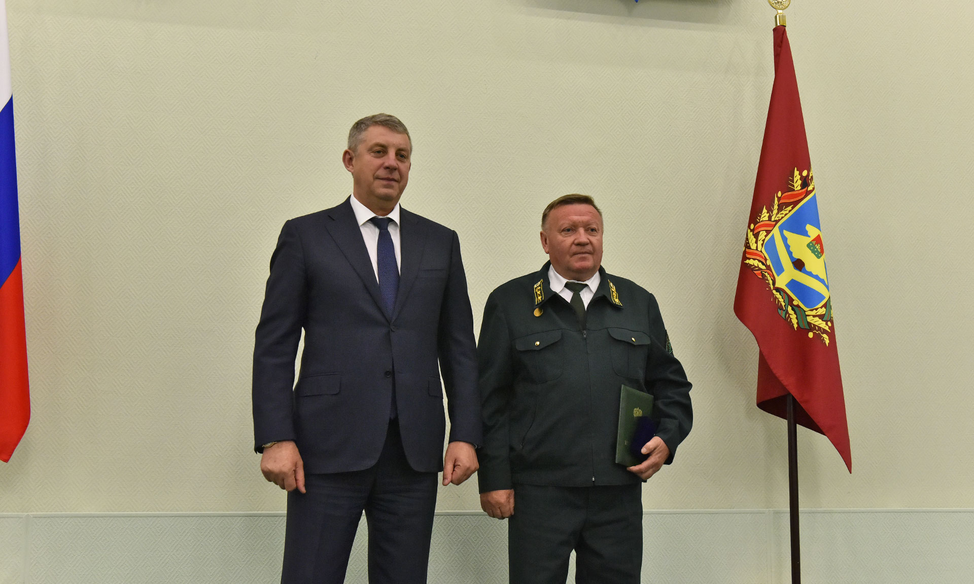Александр Богомаз вручил награды лучшим работникам лесного хозяйства. За многолетний добросовестный труд в лесном хозяйстве, большой личный вклад в сохранение и приумножение лесных богатств России и высокие достижения в служебной деятельности ведомственным нагрудным знаком отличия «Почетный работник лесного хозяйства» награжден директор ГКУ Брянской области «Учебно-опытное лесничество» Иван Шершнев. Почетную грамоту Федерального агентства лесного хозяйства Российской Федерации получили директор Злынковского лесничества Александр Поленок и директор Брянского лесничества Геннадий Сельчуков.