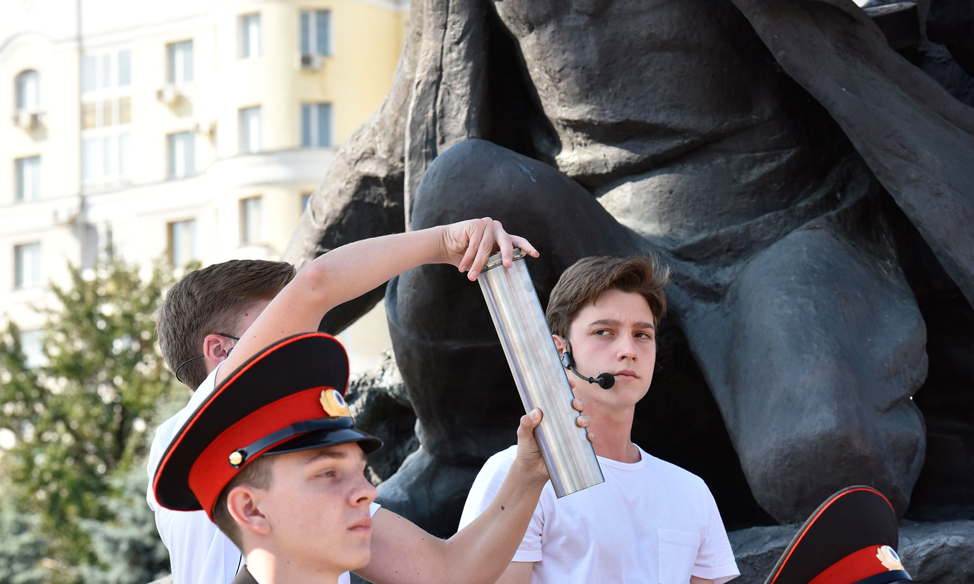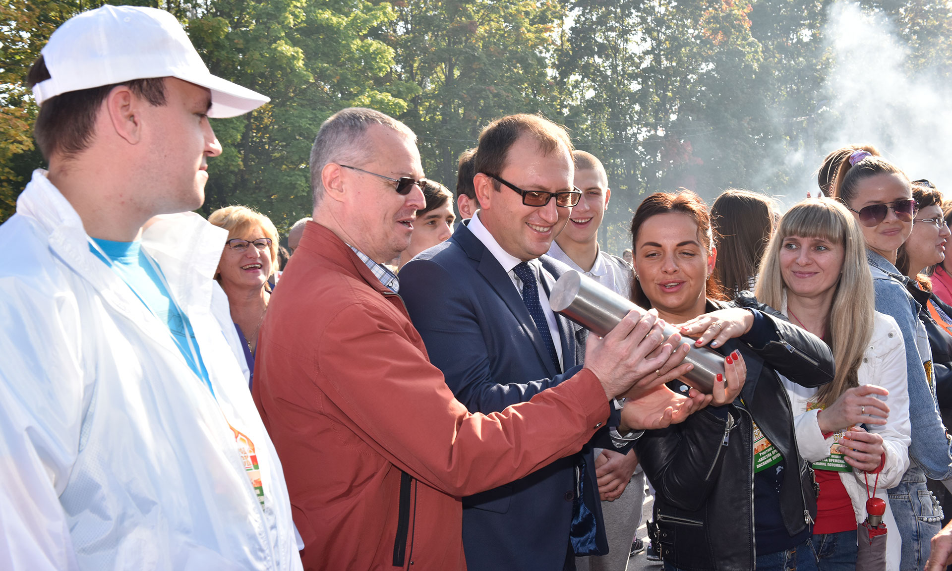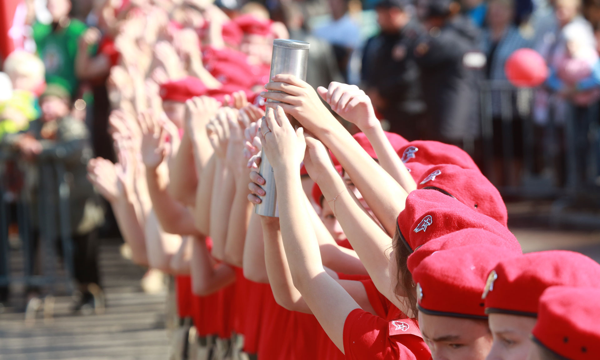 В церемонии передачи капсулы до Кургана Бессмертия приняли участие около 20000 жителей. Живой коридор для передачи капсулы времени начался с Губернатора Брянской области Александра Богомаза и заместителя полномочного представителя Президента РФ в ЦФО Мурата Зязикова. После этого из рук в руки капсулу передавали руководители Брянской области и города Брянска, почётные гости, руководители делегаций городов-побратимов, ветераны Великой Отечественной войны. Среди участников мероприятия и пожилые жители города, и мамы с малышами в колясках, и молодежь. Самому маленькому жителю, принявшему участие в передаче капсулы, нет ещё и года, а самому старшему — более 90. Капсула с посланием потомкам впитала в себя тепло и доброту сердец брянцев, из рук в руки от площади Партизан до площади Воинской славы ее бережно передавали друг другу. Воодушевленные праздником жители и гости города тянулись прикоснуться к капсуле, чтобы отдать частичку своего тепла посланию потомкам.