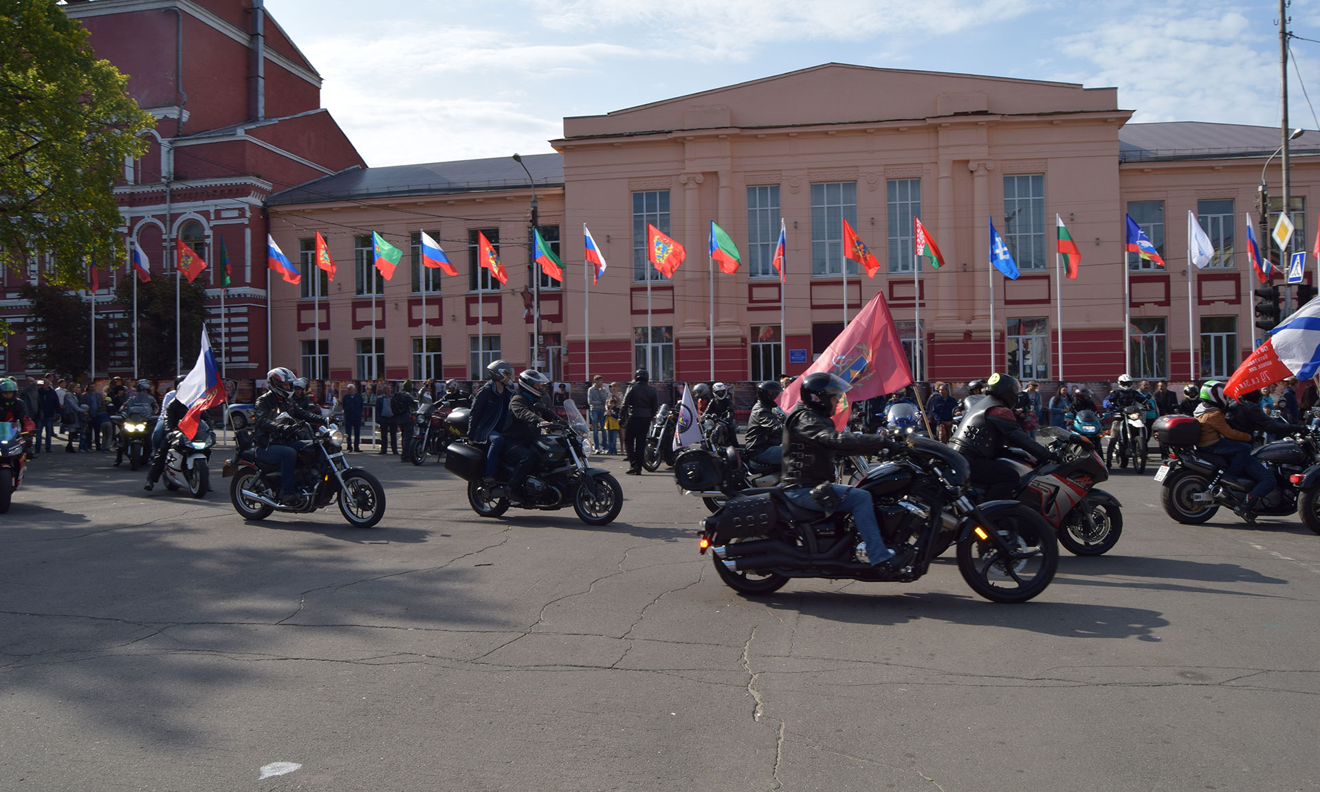 Шествие к памятнику героям Отечества по Октябрьской улице открыли байкеры. Возглавил колонну глава города Олег Шкуратов, прикрепивший к своему мотоциклу флаг города Клинцы, который позже был установлен у памятника Героям Отечества. За байкерами на главную улицу города вышла праздничная колона клинчан. Во время шествия была сделана остановка у памятника основателям города, где высокие гости, руководство города возложили цветы.