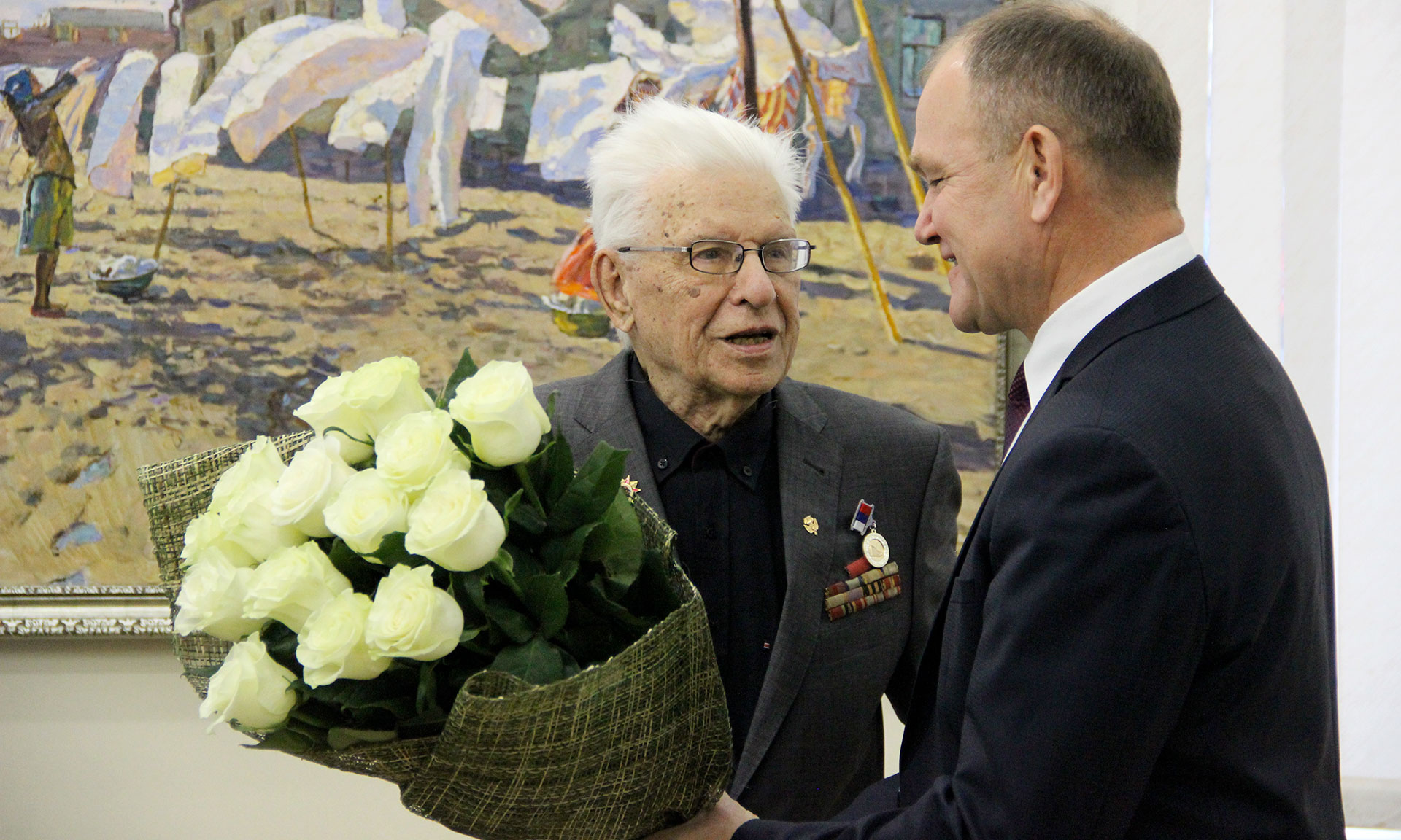 От имени Губернатора Александра Богомаза выдающегося живописца поздравил заместитель Губернатора Николай Щеглов:
