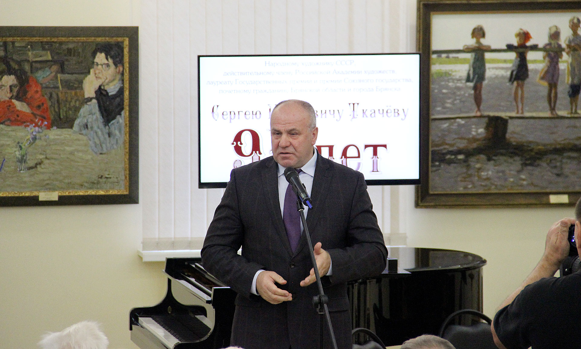 Действительный член Российской Академии художеств, лауреата Государственных премий и премии Союзного государства, почетного гражданина Брянской области и города Брянска Сергей Петрович Ткачев приехал в Брянск вместе со своим братом руководителем творческой мастерской живописи АХ СССР, народным художником СССР, Лауреатом Государственной премии СССР, Государственной премии РСФСР имени И. Е. Репина и премии Правительства РФ Алексеем Петровичем Ткачевым.