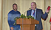 — Если десять лет назад говорили, что в сельское хозяйство вкладывать деньги бесполезно, они уйдут как вода в песок, то сегодня те, кто так говорил, ошибались. Посмотрите на результаты, которых добилась Брянская область: 100 центнеров с гектара! Я сам по образованию агроном, 30 центнеров — это был рекорд! За это награждали орденами и медалями. 100 центнеров — это ведь не предел. Мы являемся дилером Петербургского тракторного завода по Брянской, Смоленской и Калужской областям. Могу вам сказать: они нам завидуют. Я горжусь Брянской областью! Месяц назад я приезжал в Смоленскую область, Курганский район, если б вы видели, в каком упадке село! Нам предложили землю, чтобы мы возделывали, так как мы оказываем помощь в обработке почвы. Если кто-то обратится, я подскажу, где найти в Смоленской и Калужской областях землю, но я говорю, что на Брянщине нет уже земли свободной для возделывания! Честь и хвала и руководству области и, в первую очередь, — вам, труженики сельского хозяйства! Низкий вам поклон! Мы как поставщик техники — ваш партнер в получении этих урожаев. Как-то мне Георгий Константинович Лобус сказал: «Алексей Иванович, когда же твой «Кировец» будет «пахнуть» «Джон Диром»? Сегодня мы вспомнили этот разговор и он сказал: «Уже начинает «пахнуть»!». Этот трактор, который работает на полях Брянской области, показал себя с хорошей стороны, и те люди, которые на нем работают, показывают такие результаты! Желаю вам счастья, благополучия, удачи, мы должны гордиться своей областью, она этого заслуживает!