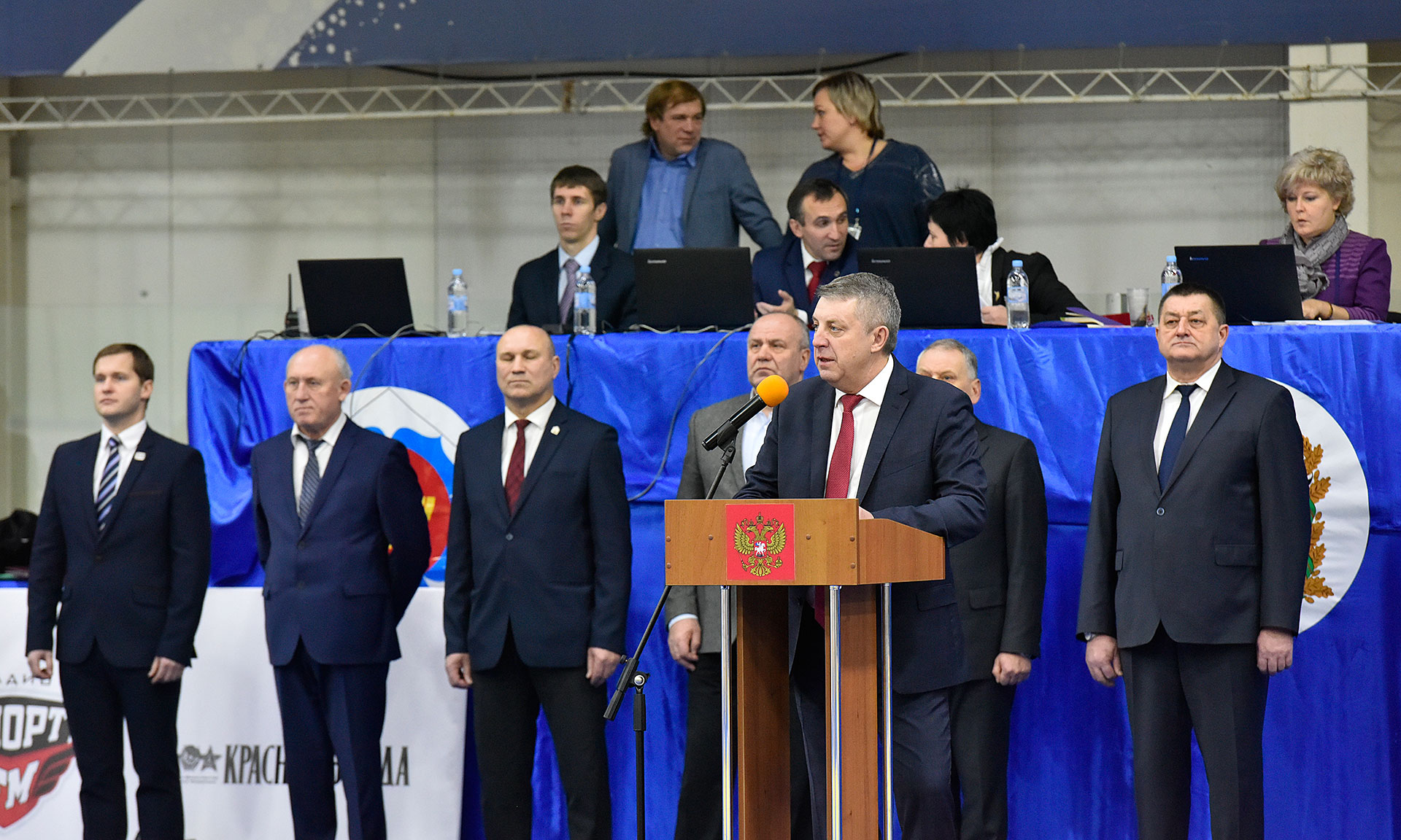 — Я рад приветствовать вас на гостеприимной Брянской земле! Соревнования такого уровня впервые проходят у нас. Для нас почетно и ответственно принимать сильнейших спортсменов Российской Федерации, а у вас, лучших представителей этого вида спорта, обязательно все получится, и те цели, которые вы ставите перед собой, будут обязательно достигнуты! Ведь у вас есть пример — наш национальный лидер, Президент нашей страны Владимир Владимирович Путин, который не на словах, а на деле показывает, как нужно пропагандировать спорт. Он играет в хоккей, катается на горных лыжах, и с 11 лет по настоящее время остается преданным дзюдо. Этот вид спорта считается полезным не только для тела, но и для ума.