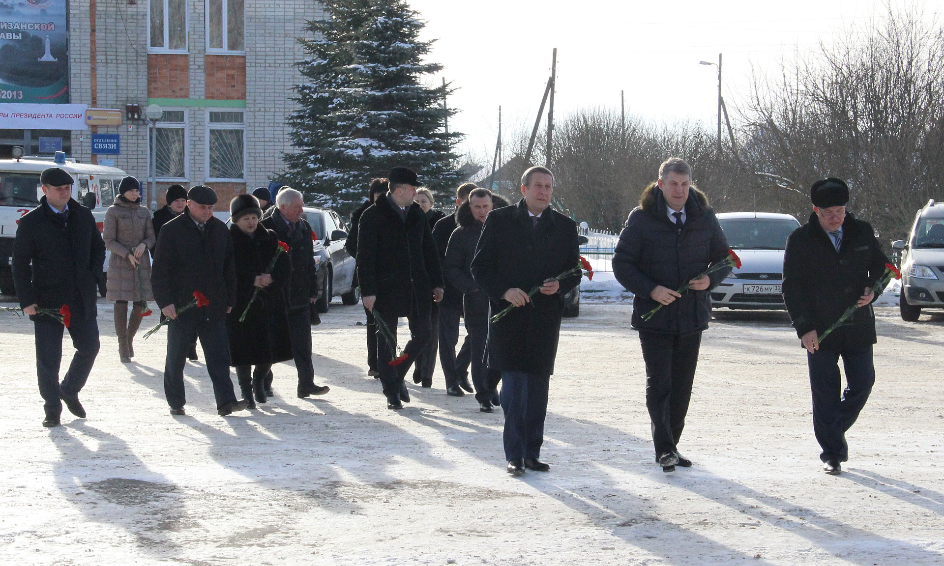 До начала церемонии почетные гости возложили цветы к стеле «Журиничи — село партизанской славы».