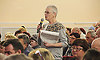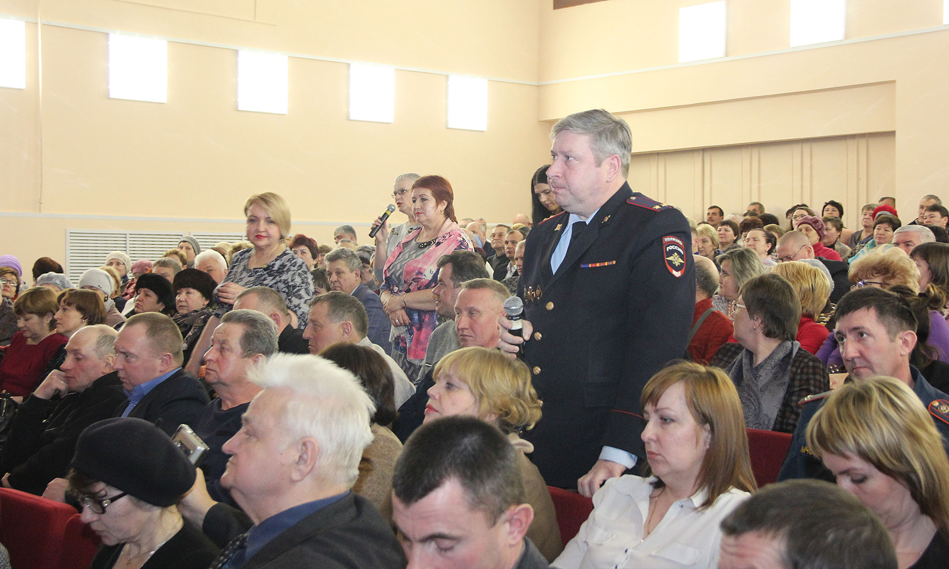 После выступления главы администрации района жители задали свои вопросы, которые, в частности, касались ремонта дорог и тротуаров. Так, жители улицы Розы Люксембург жаловались на то, что по центральной улице едут большегрузы, а дорога не ремонтировалась уже 50 лет. Александр Прудник пояснил, что совсем недавно на улице были поставлены знаки, ограничивающие скорость движения до 40 км/ч, в планах положить асфальт и установить искусственные неровности — «лежачих полицейских». Вообще прекратить движения транспорта по этой улице невозможно — тогда останутся недоступны больница, вокзал и другие социально значимые учреждения. Кроме того, по этой дороге перемещаются и сельхозмашины, а это значит, что развивается сельское хозяйство района, а муниципальное образование получает от сельхозтоваропроизводителей налоги на свое развитие.