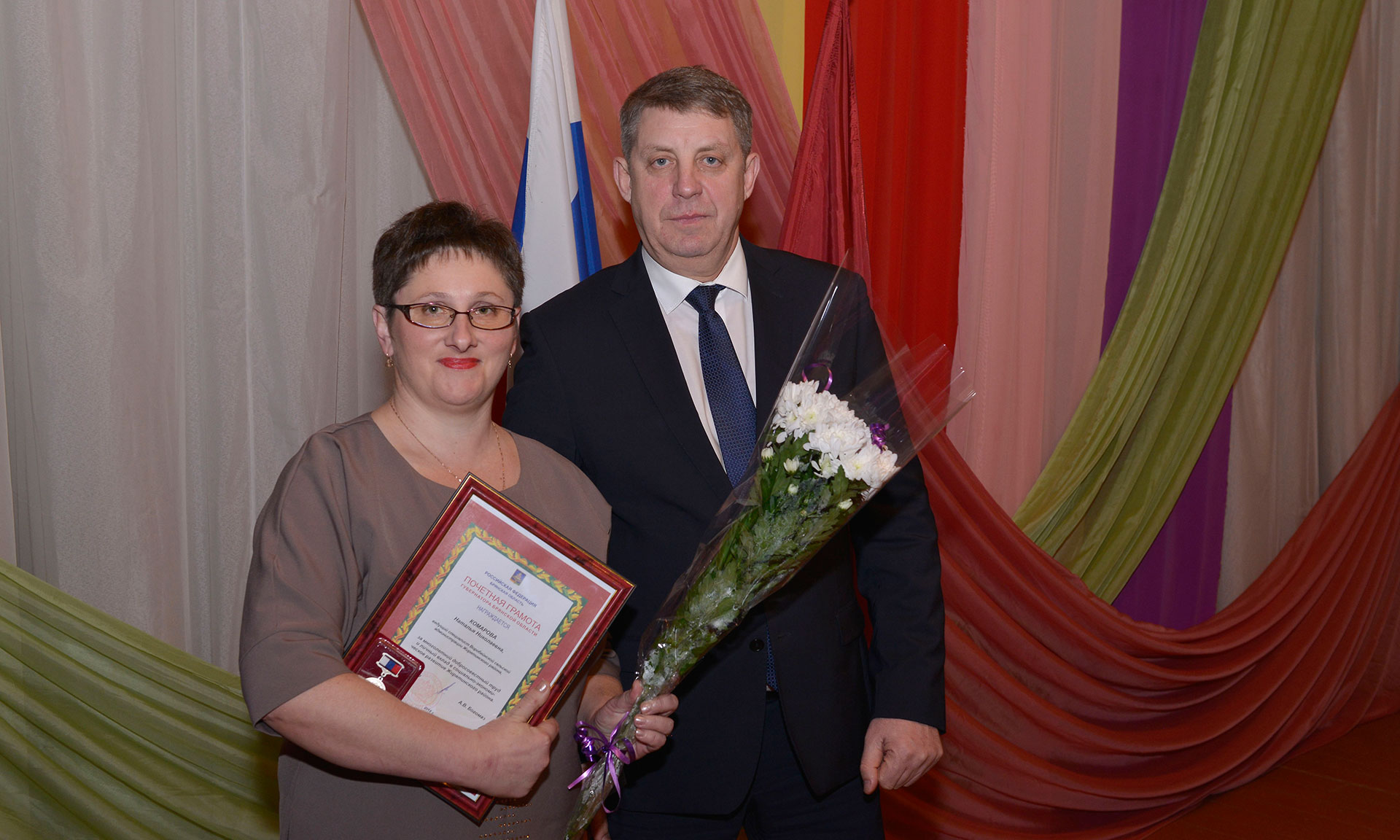 В завершение встречи Губернатор Брянской области Александр Богомаз и председатель Брянской областной Думы Владимир Попков отметили лучших работников района заслуженными наградами.