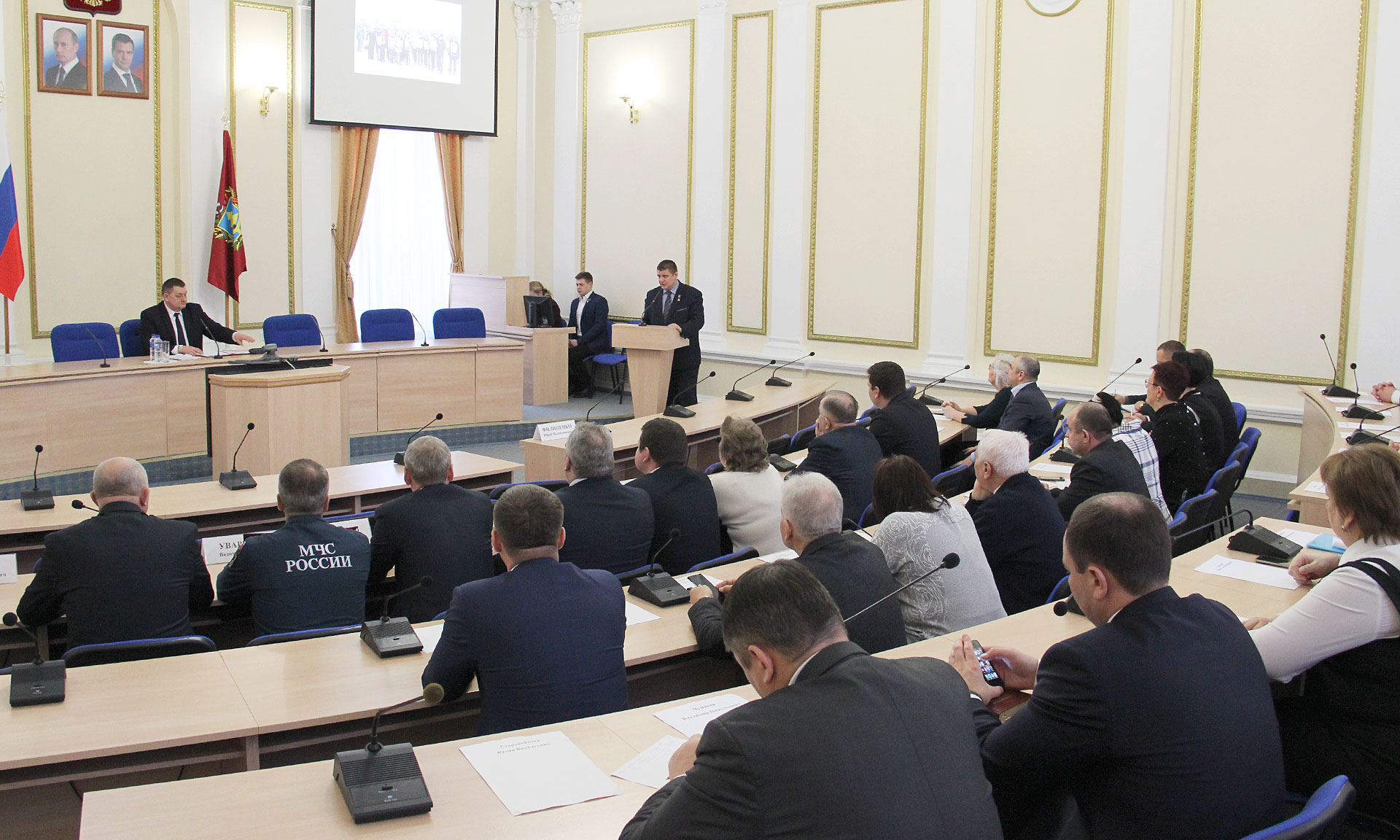 Докладчиком по основному вопросу выступил начальник отдела молодежных программ и общественных проектов управления молодежной политики и общественных проектов департамента внутренней политики Брянской области Александр Постоялко. Он отметил, что месячник оборонно-массовой и военно-патриотической работы занимает особое место в деятельности патриотических организаций, а также муниципальных образований, образовательных организаций Брянской области.
